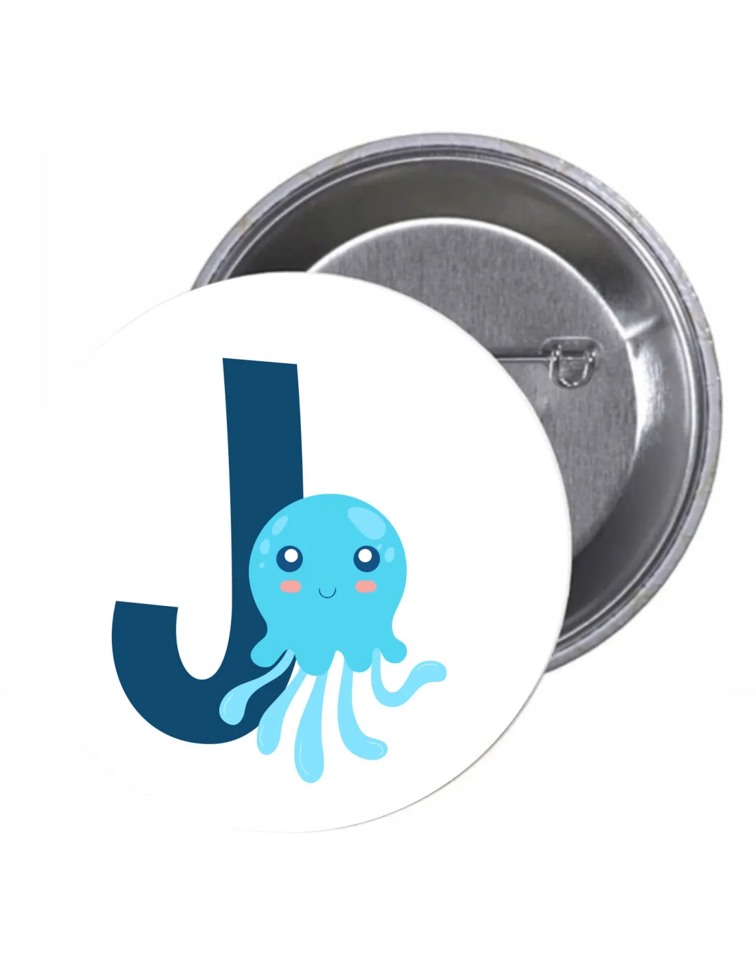 Przypinki Buttony Literki dla Dzieci – J Znaczki Badziki