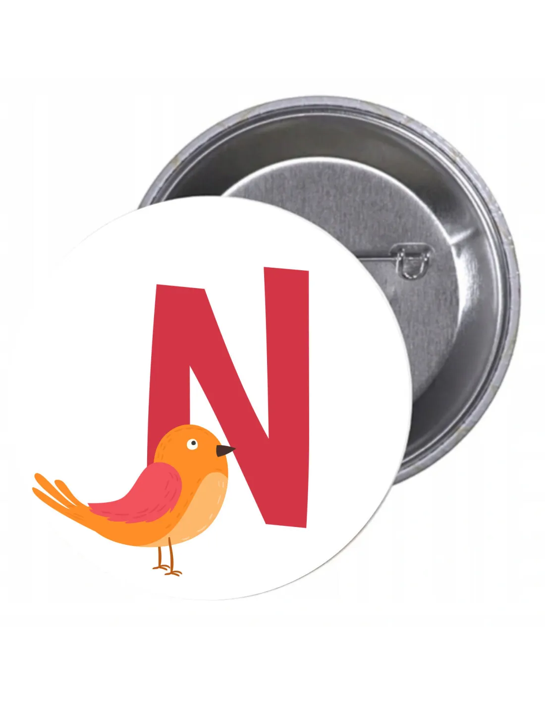Przypinki buttony LITERKI DLA DZIECI - N znaczki badziki z grafiką