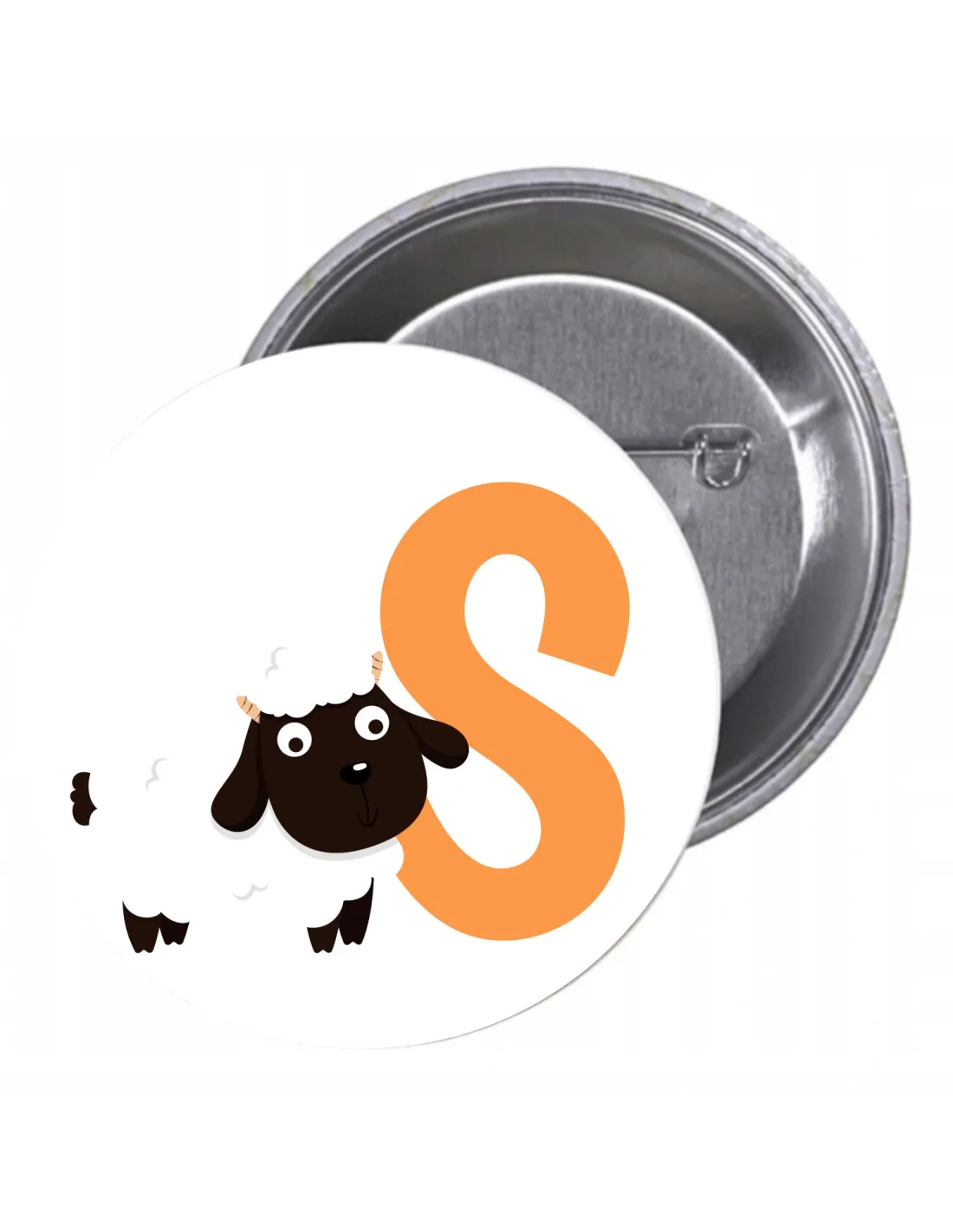 Przypinki buttony LITERKI DLA DZIECI - S znaczki badziki z grafiką
