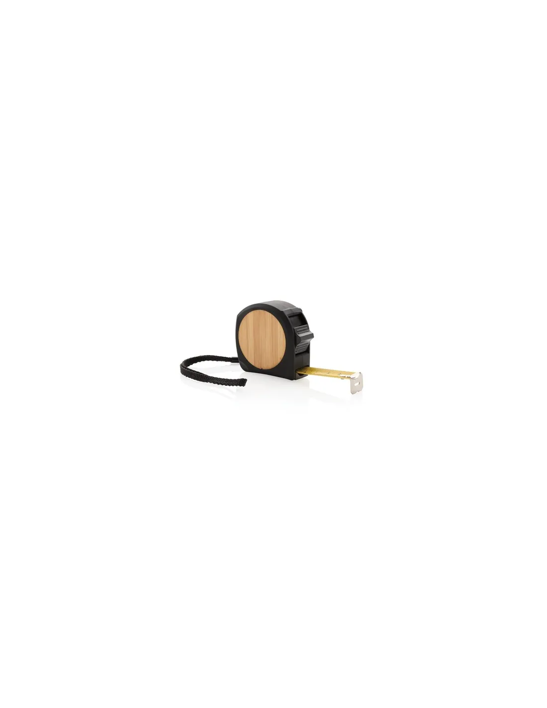 • Miara 5 m, taśma o szerokości 19 mm z haczykiem, wykonana z bambusa i ABS, gumowane wykończenie, przycisk stop, posiada klip i pasek na rękę w 2 kolorach: czarny, biały.