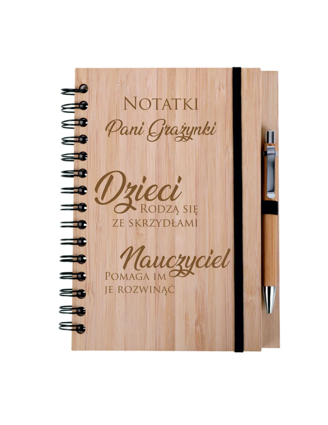 zestaw notes notatnik drewniany A5 grawer prezent dla nauczycielki