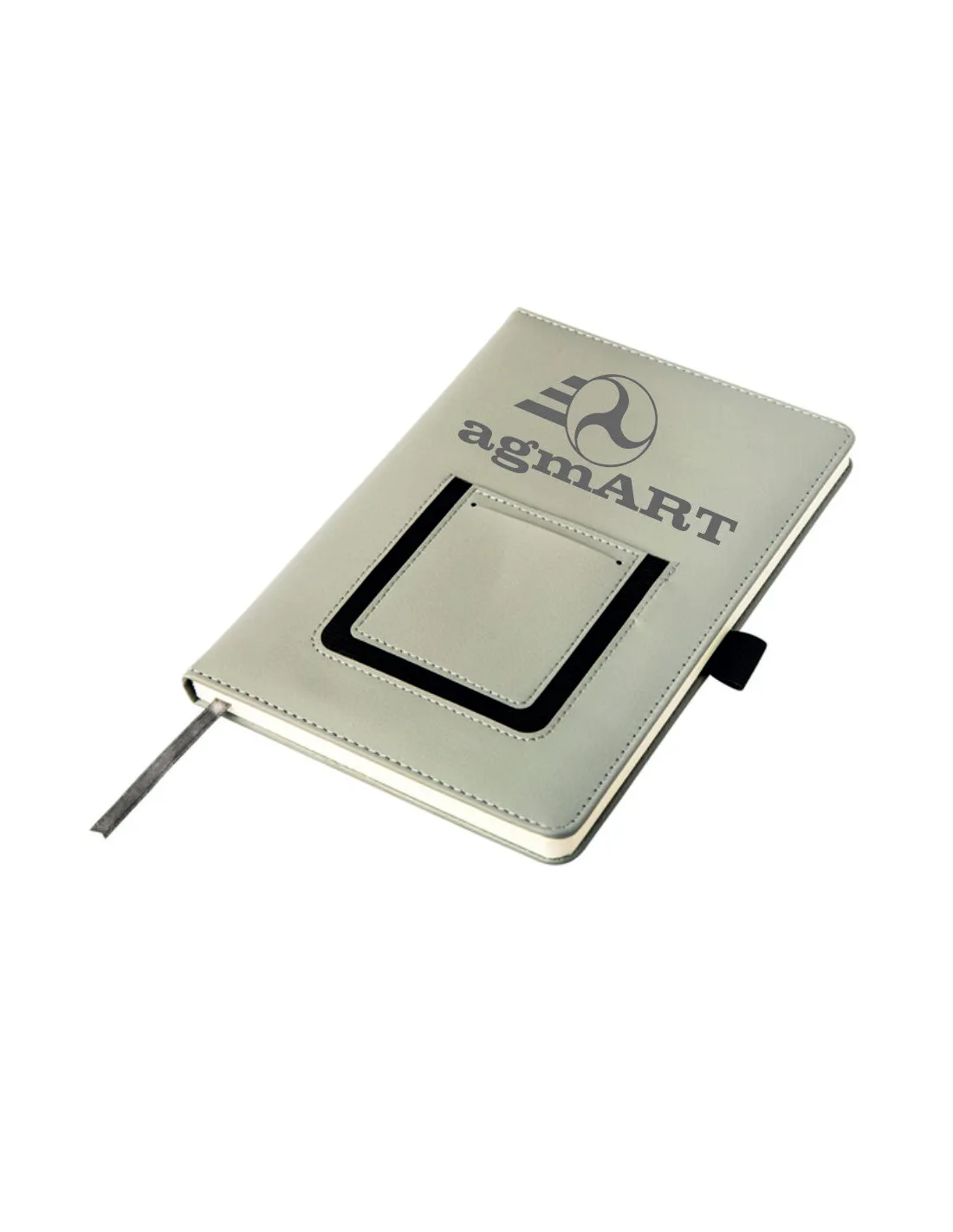 Notatnik szary notes z kieszonką na telefon A5 grawerowany logo gadżet firmowy 25 sztuk