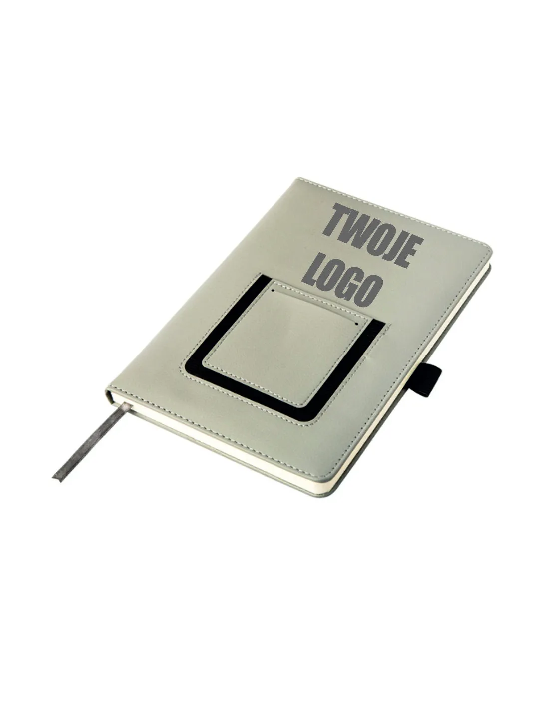 Notatnik szary notes z kieszonką na telefon A5 grawerowany logo gadżet firmowy 10 sztuk