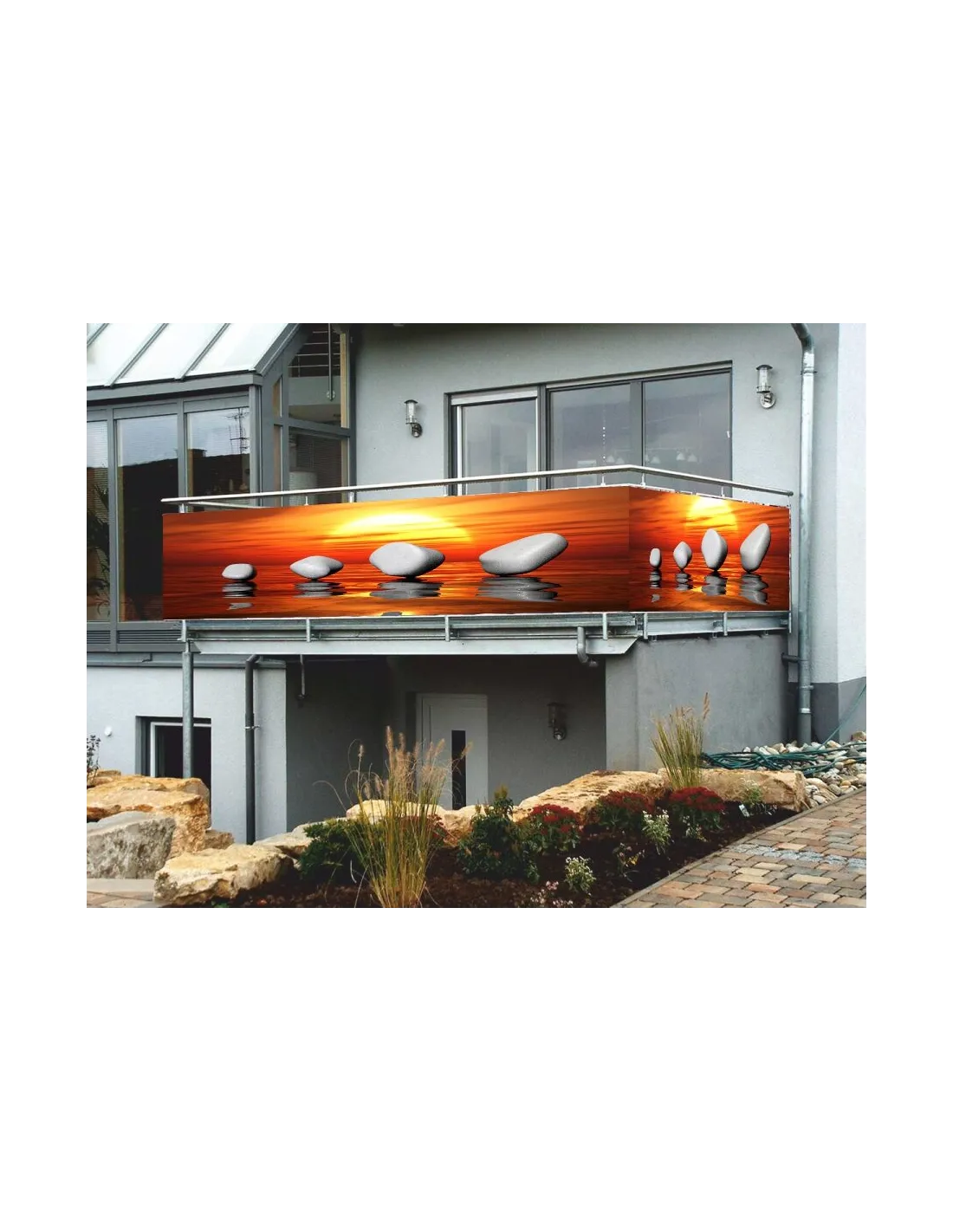 Osłona Balkonowa na Wymiar z Nadrukiem Balkon Widok Kamień