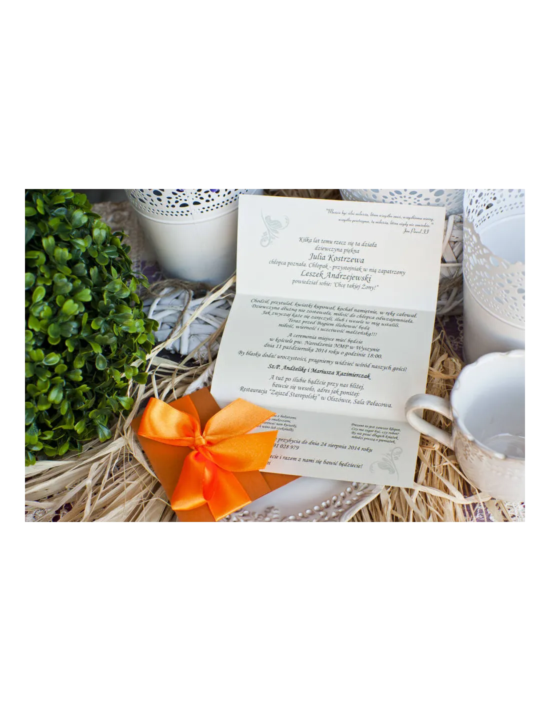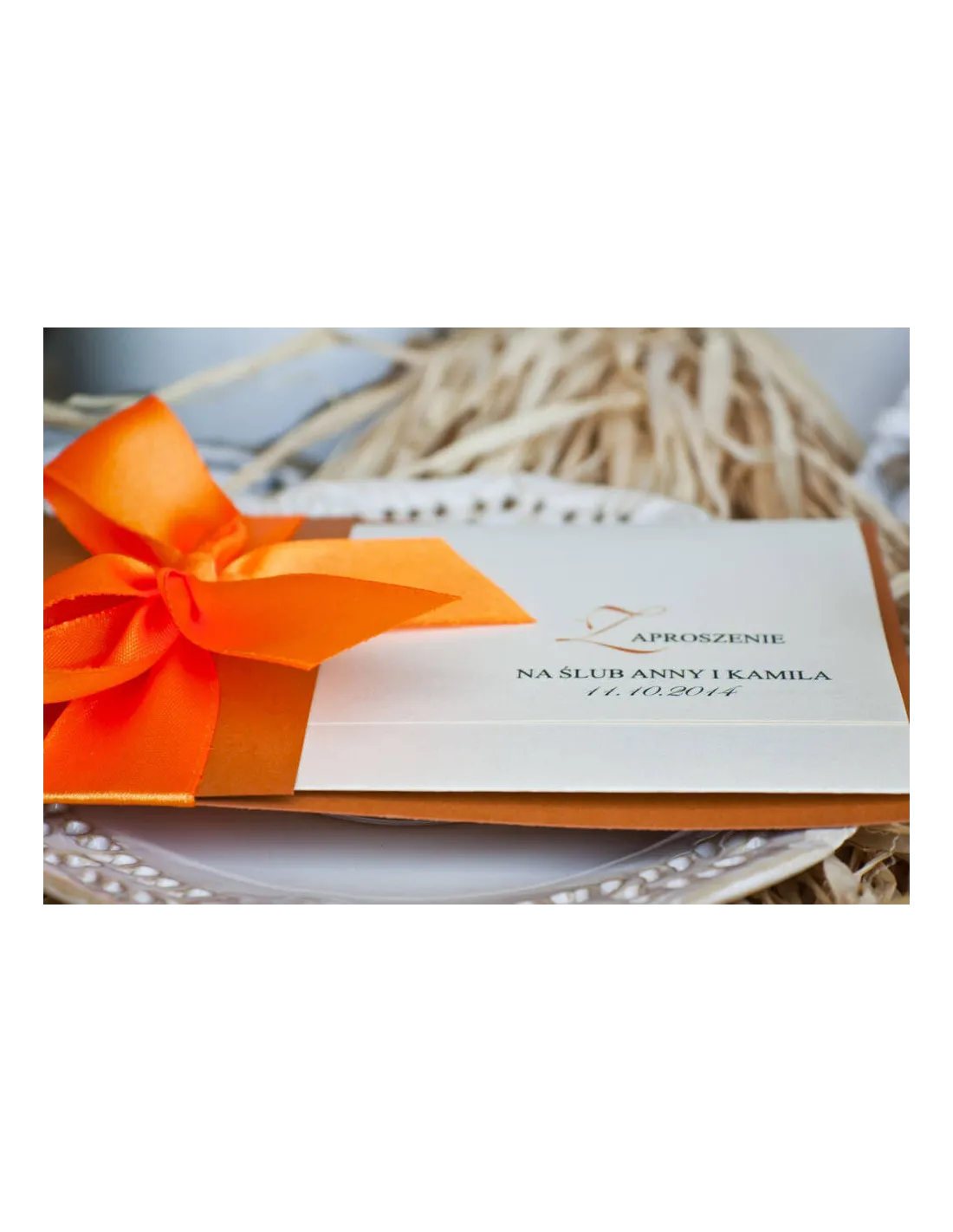 Zaproszenia Ślubne Perłowe Glamour Pomarańczową Wstążką