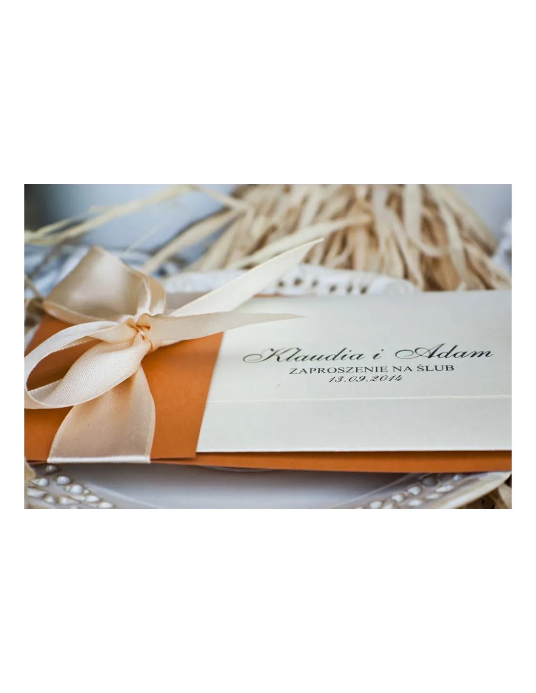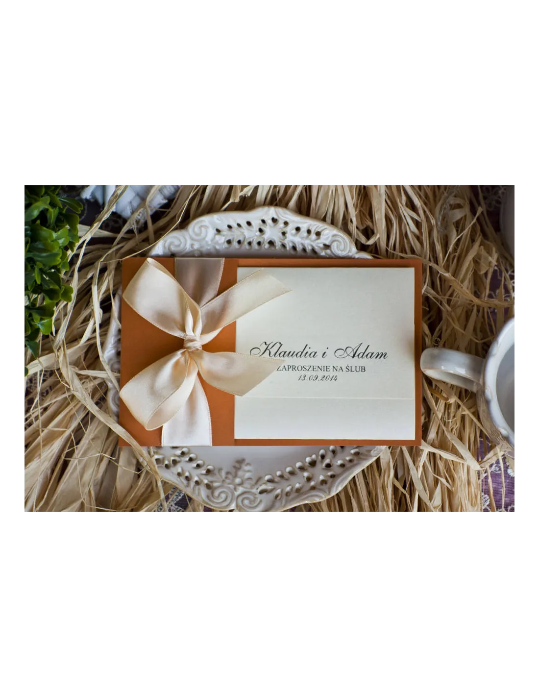Zaproszenia Ślubne Perłowe Glamour Rude Kremową Kokardą