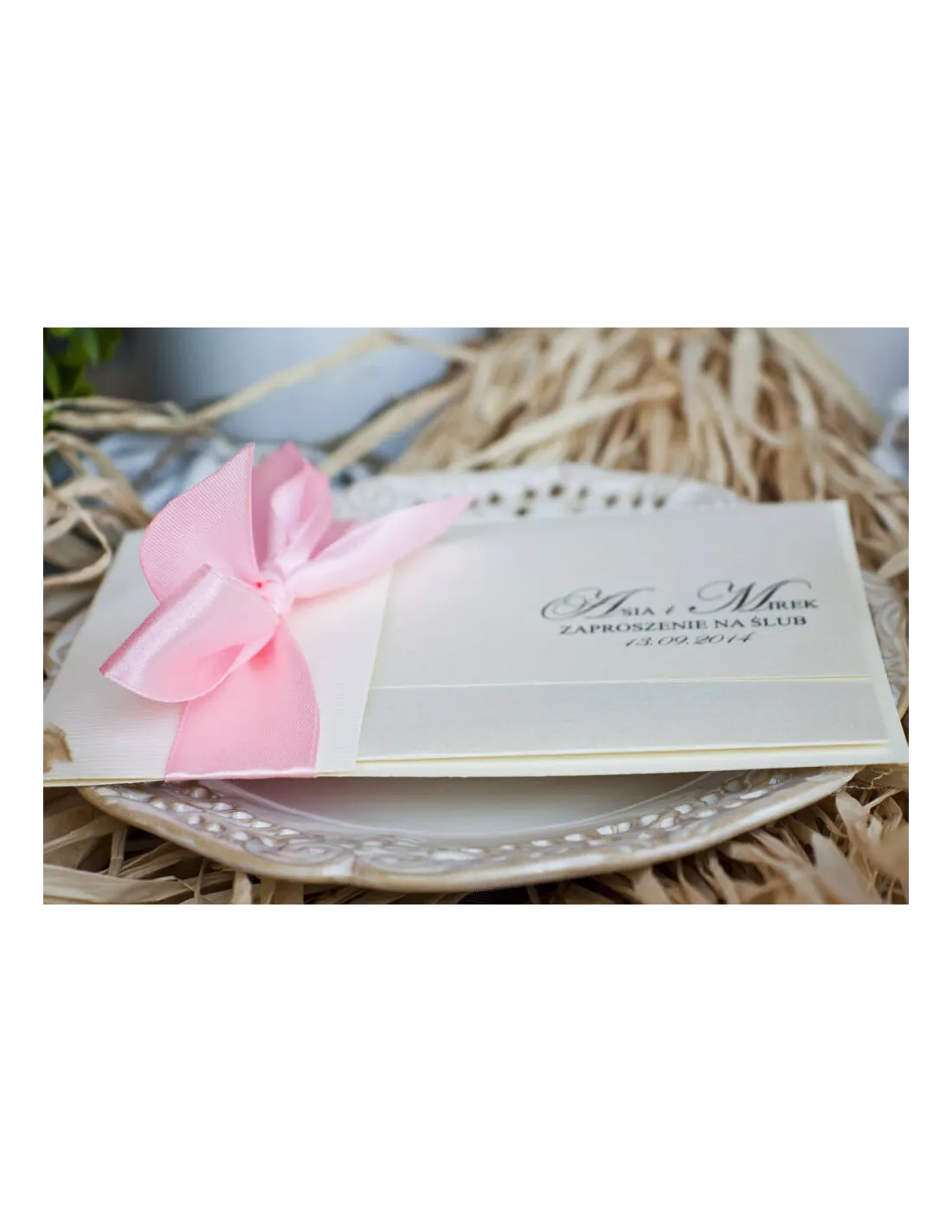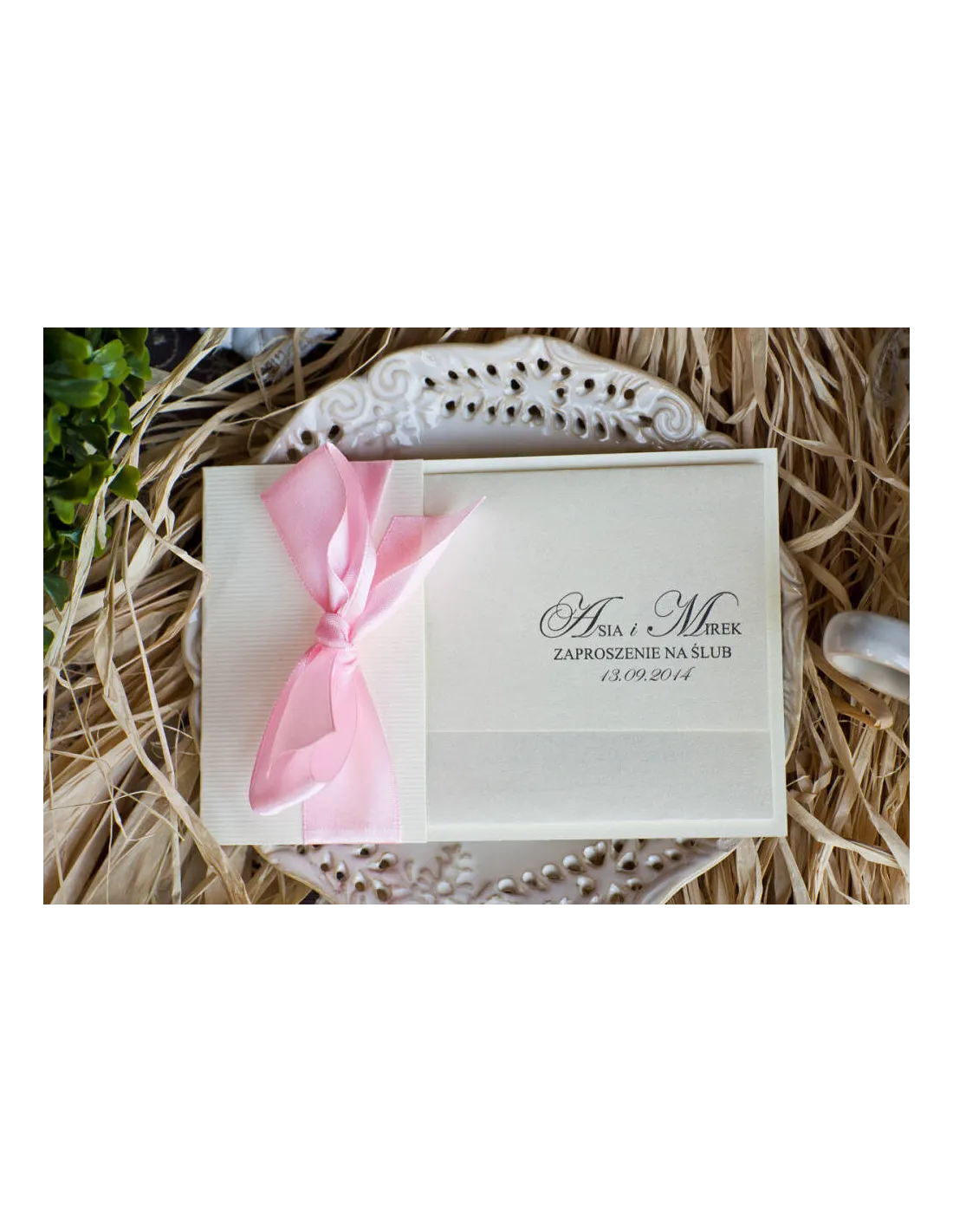 Zaproszenia Glamour na Ślub - perłowo różowe z papierem w prążki