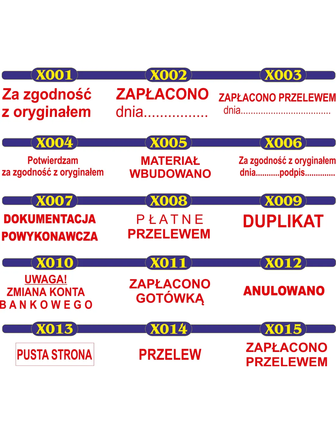 Przykładowe wzory pieczątek: