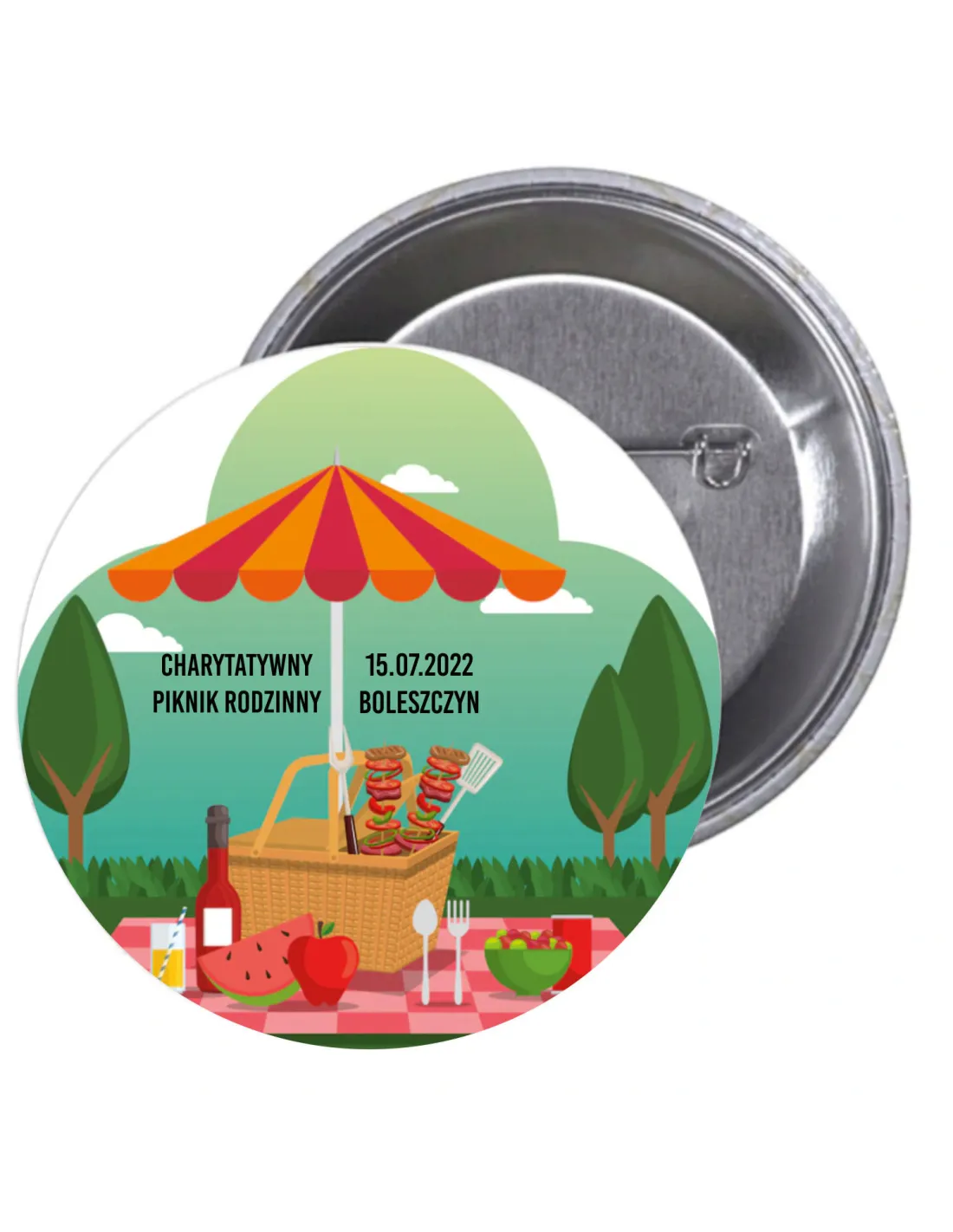 Przypinki buttony CHARYTATYWNY PIKNIK RODZINNY znaczki badziki z grafiką