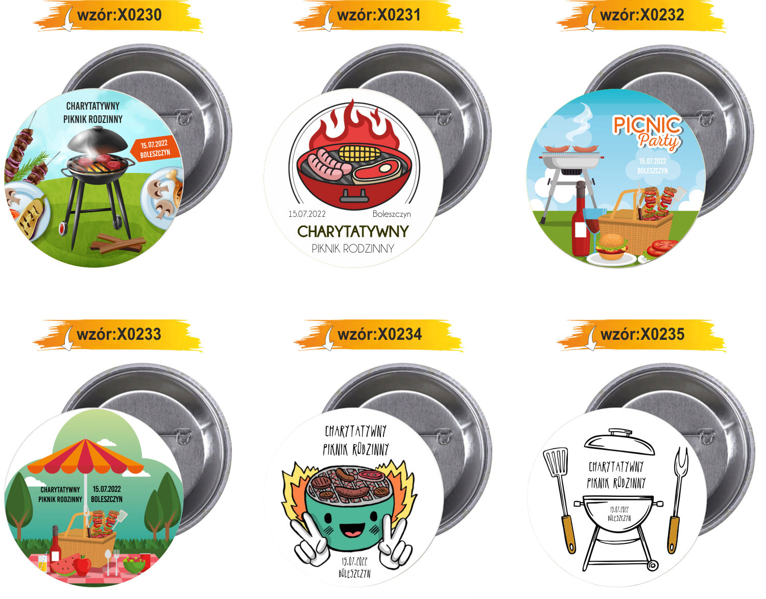 Przypinki Buttony Charytatywny Piknik Gotowy Projekt