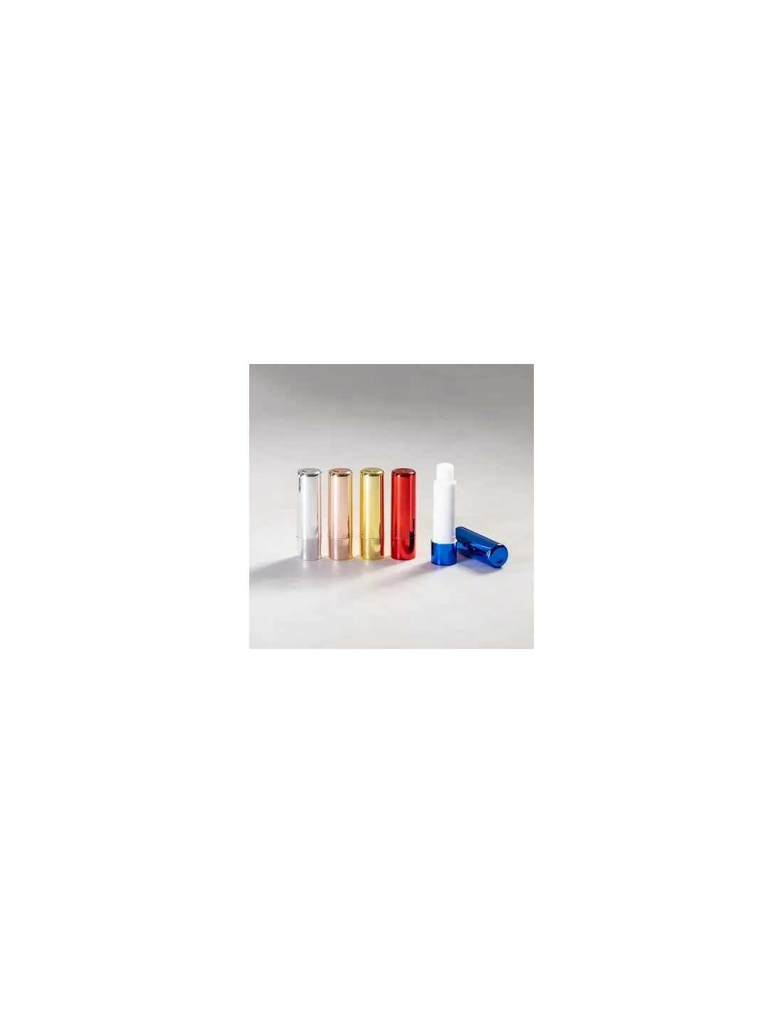 • Pomadka ochronna z filtrem SPF15, zapach waniliowy w 5 kolorach: czerwony, niebieski, różowy, żółty, srebrny