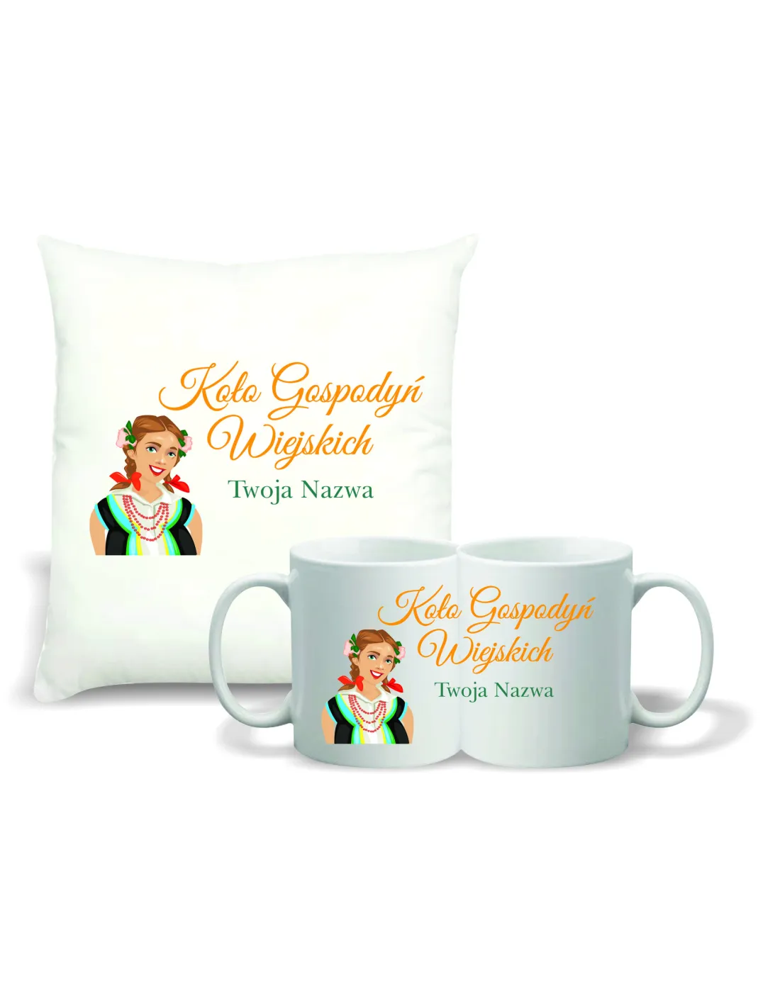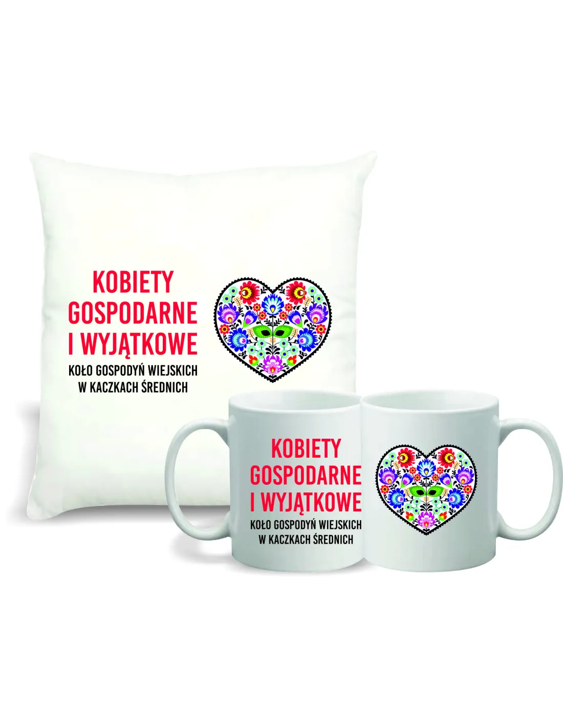 Zestaw PODUSZKA + KUBEK koło gospodyń wiejskich KGW TWÓJ TEKST GRAFIKA