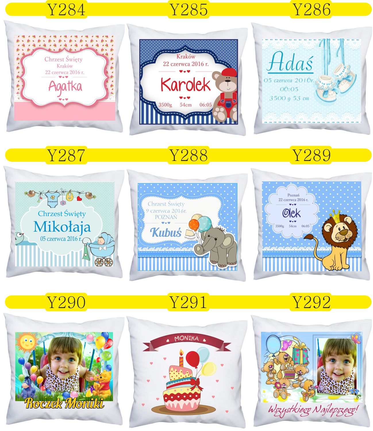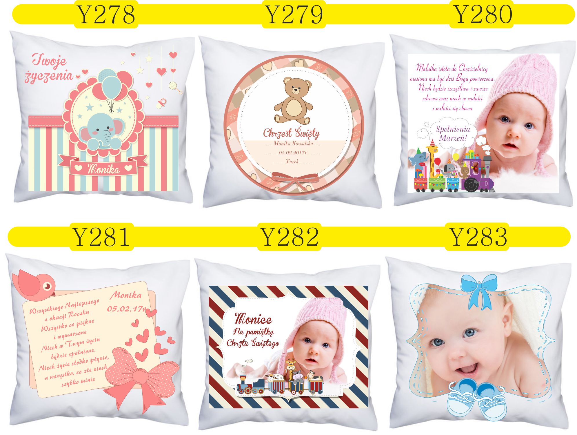 Przykładowe wzory poduszek z nadrukiem: