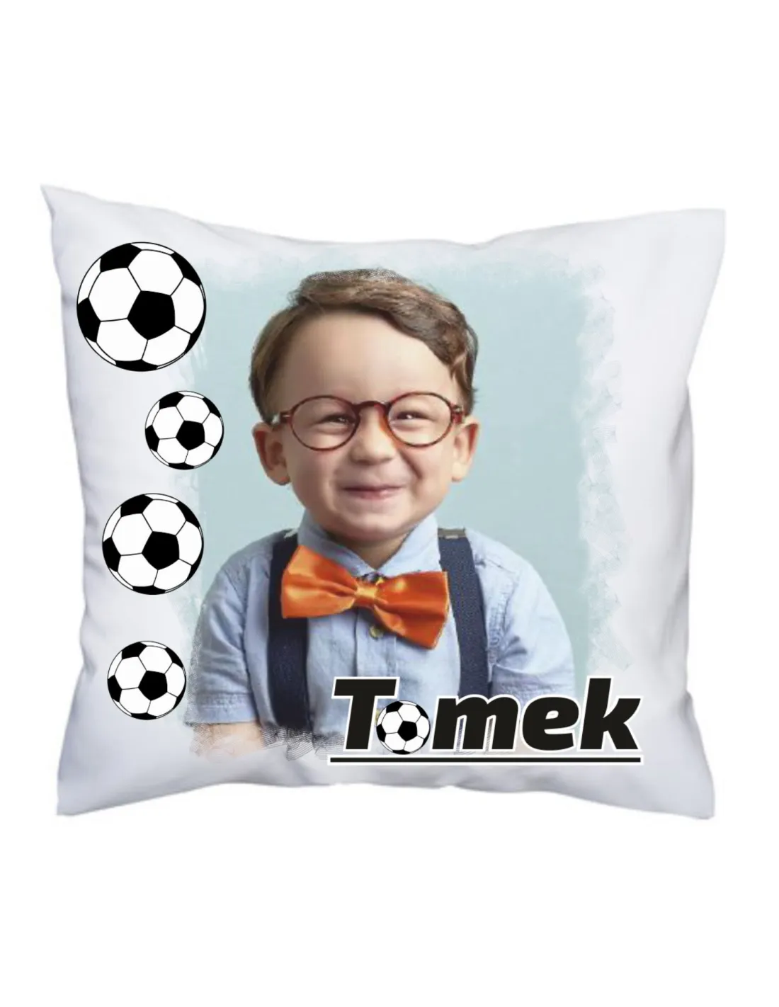Foto Poduszka z nadrukiem imieniem prezent dla chłopca Poduszka piłkarska ze zdjęciem