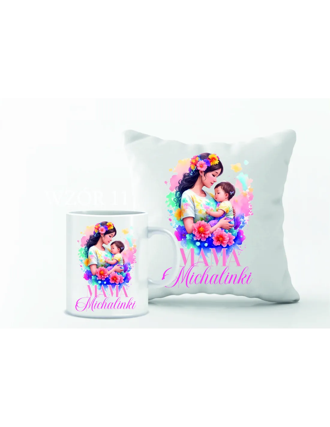 Zestaw PODUSZKA i KUBEK z nadrukiem PREZENT dla przyszłej mamy Z IMIENIEM