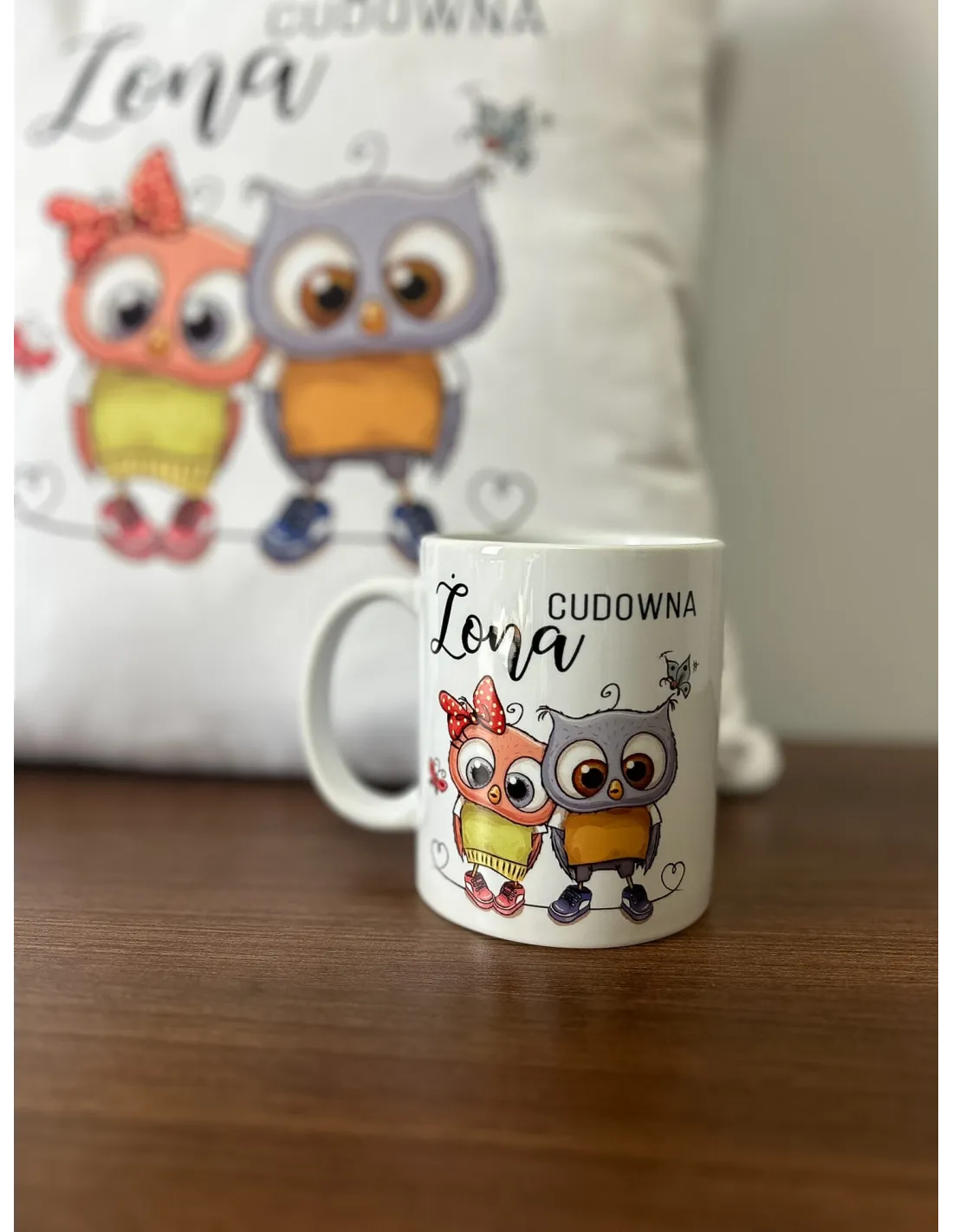 Przykładowe wzory zestawów Foto Poduszka + Foto Kubek z nadrukiem: