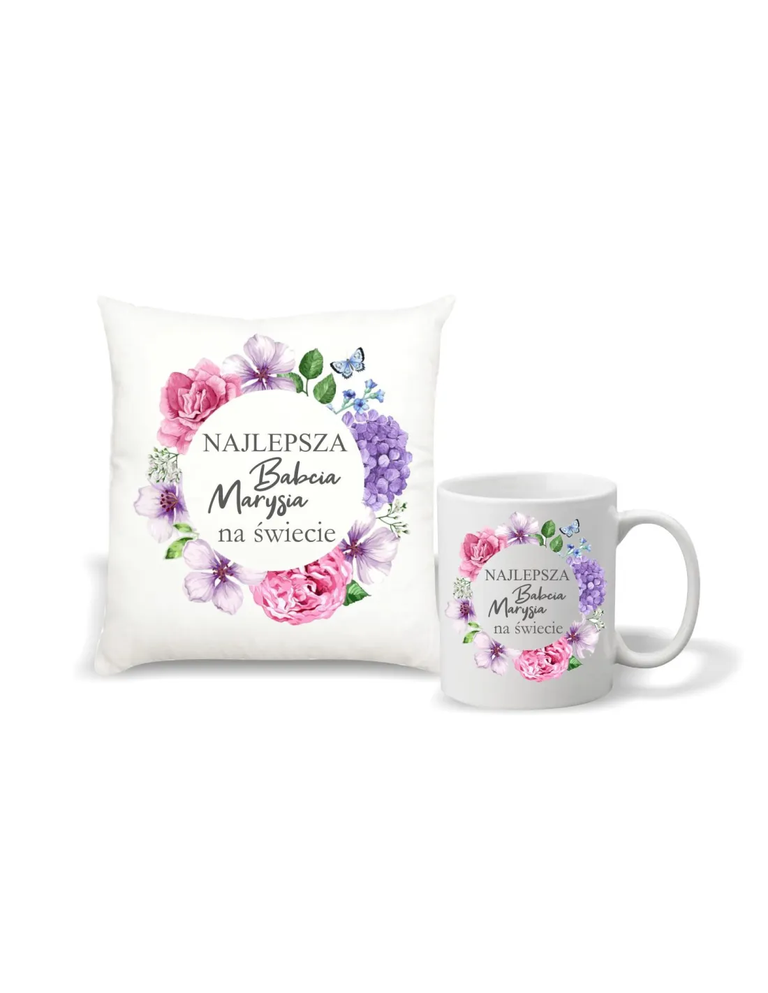 Foto Poduszka kubek Prezent na Dzień Babci i Dziadka zestaw 1+1 z nadrukiem najlepsza babcia imię