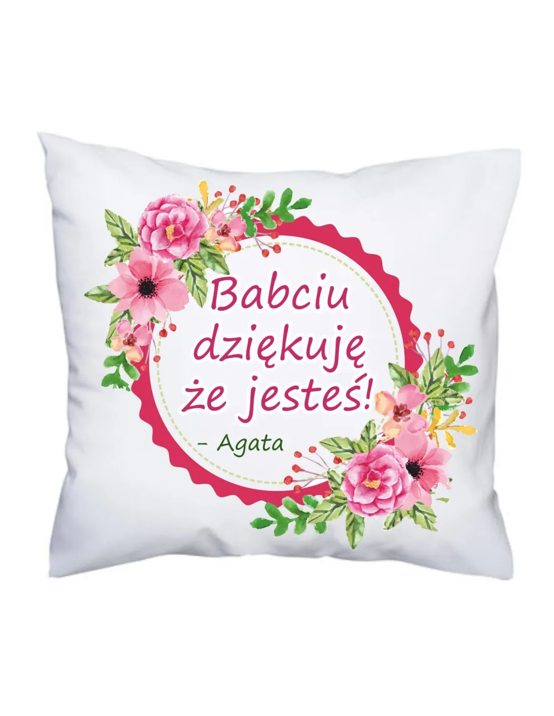 Prezent na Dzień Babci Poduszka z nadrukiem Babciu dziękuję że jesteś! - imię