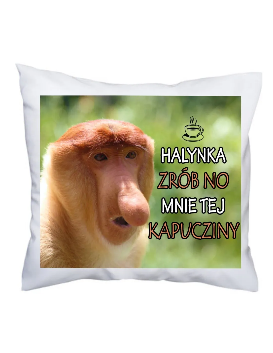 Poduszka z nadrukiem Janusz Halynka zrób no mnie tej kapucziny