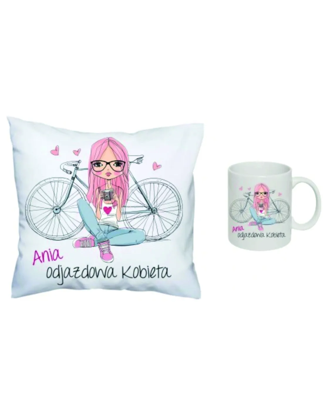 Poduszka kubek zestaw 1+1 z nadrukiem imię odjazdowa kobieta