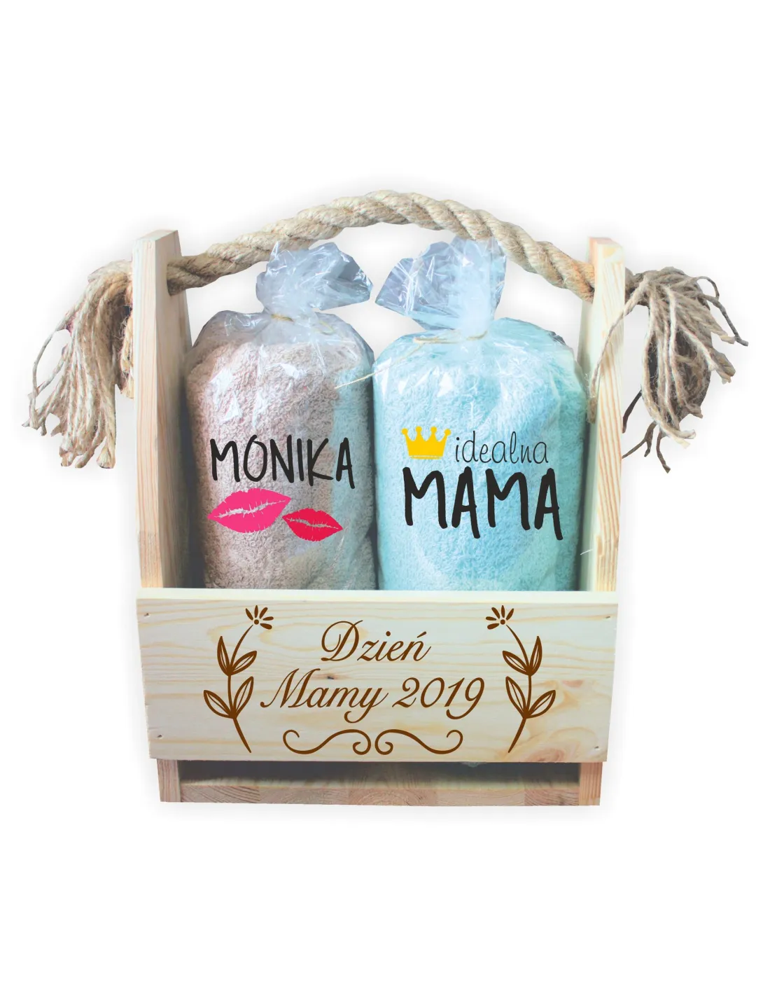 Zestaw 2 Ręczniki z haftem + skrzynka z grawerem