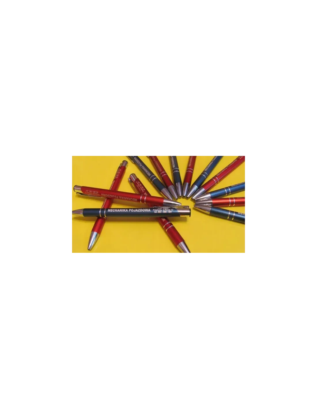 - dostępne kolory długopisów:czerwony, czarny, brąz, zielony, bordowy, granat