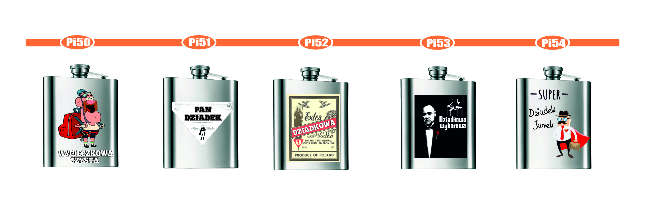 • nierdzewna piersiówka o pojemności 210ml ( 93 x 149 x 22 mm )