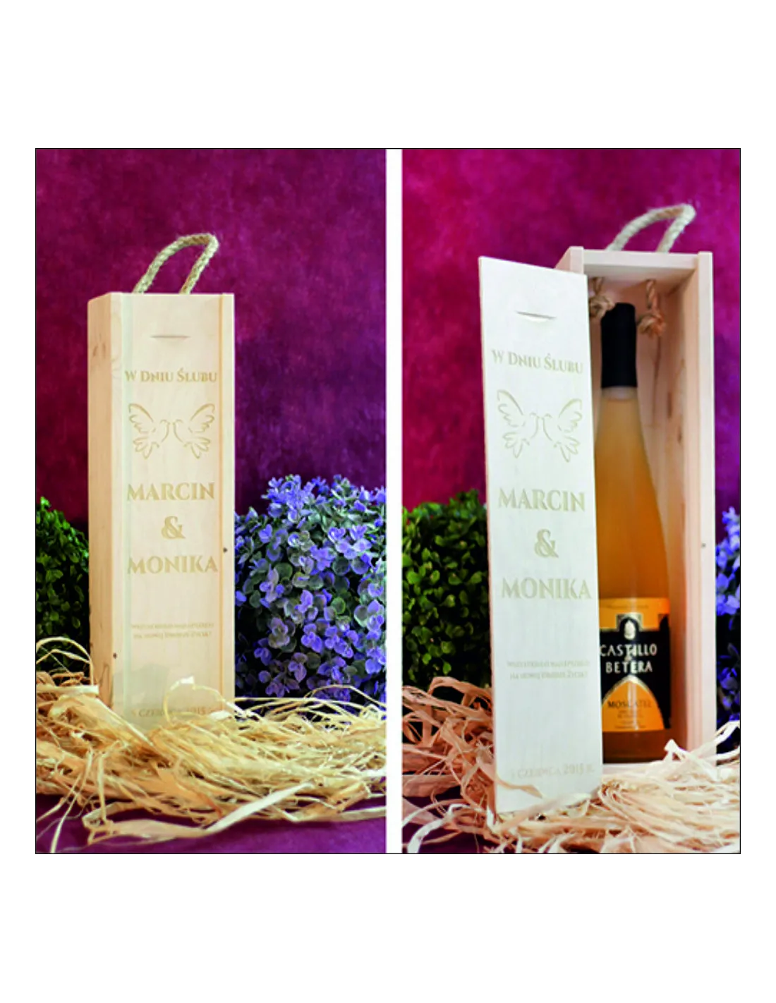Przykładowe wzory skrzynek na wino z grawerem: