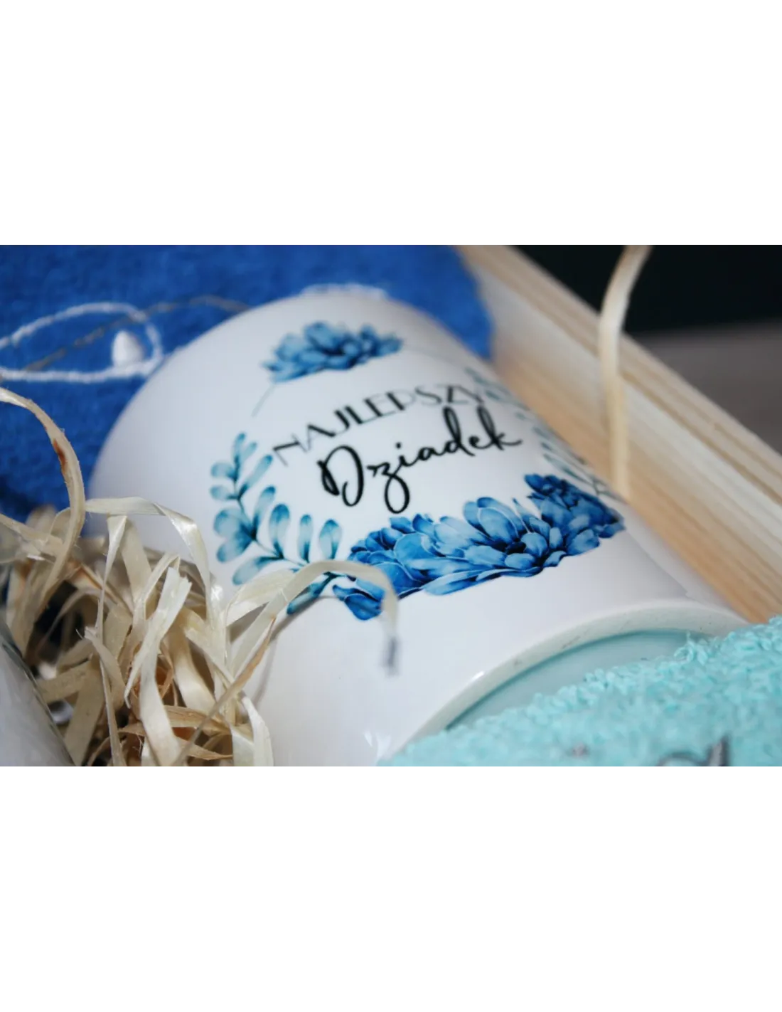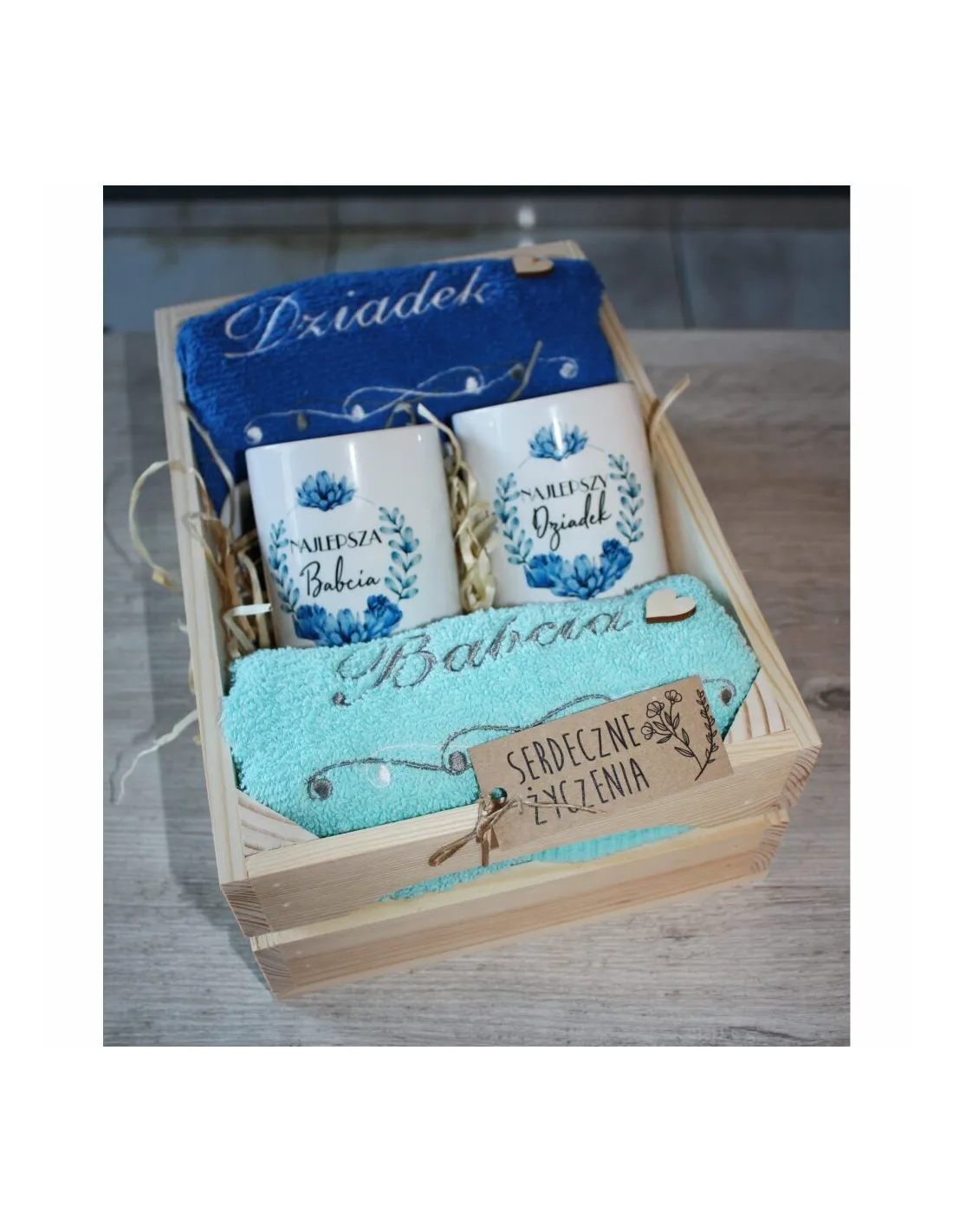 Zestaw prezentowy - 2 ręczniki z haftem w skrzynce ozdobnej + 2 kubki z nadrukiem