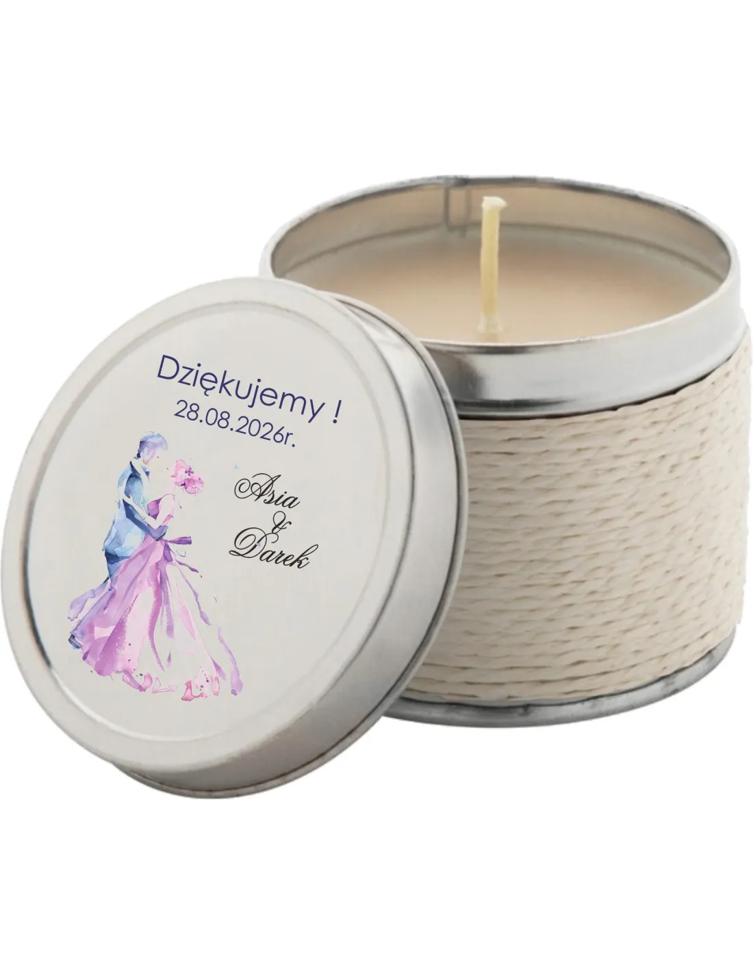 ŚWIECZKA zapachowa PODZIĘKOWANIE DLA GOŚCI NA ŚLUB WESELE nadruk UV