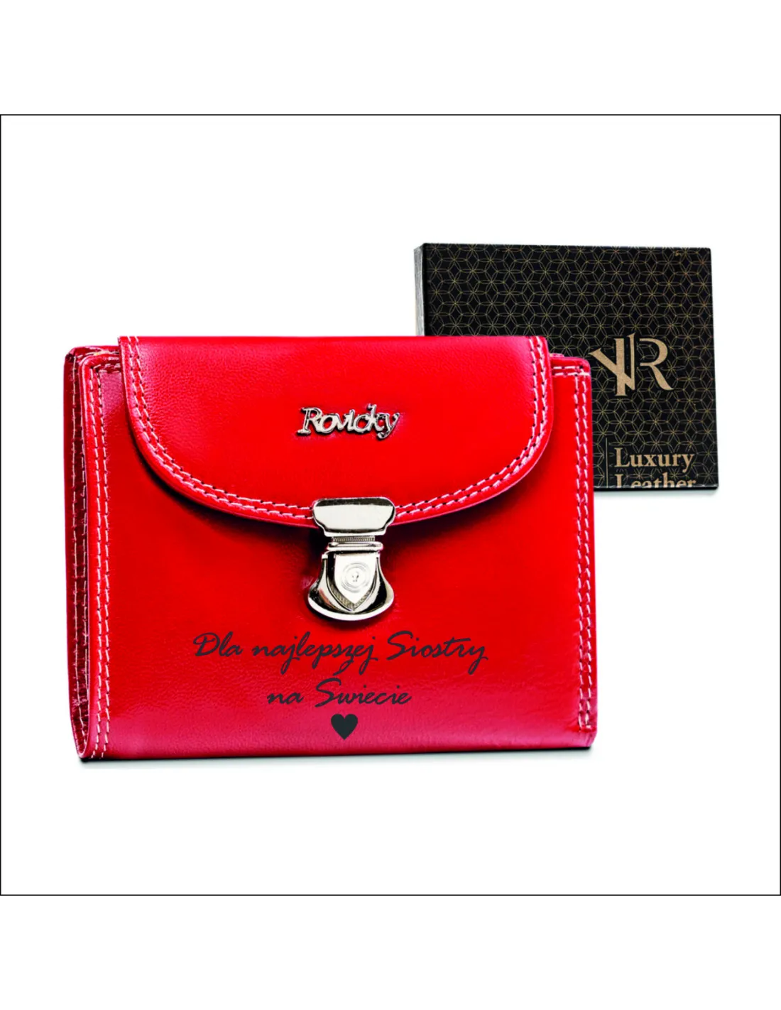 Elegancki skórzany damski portfel ROVICKY® z indywidualnym grawerem