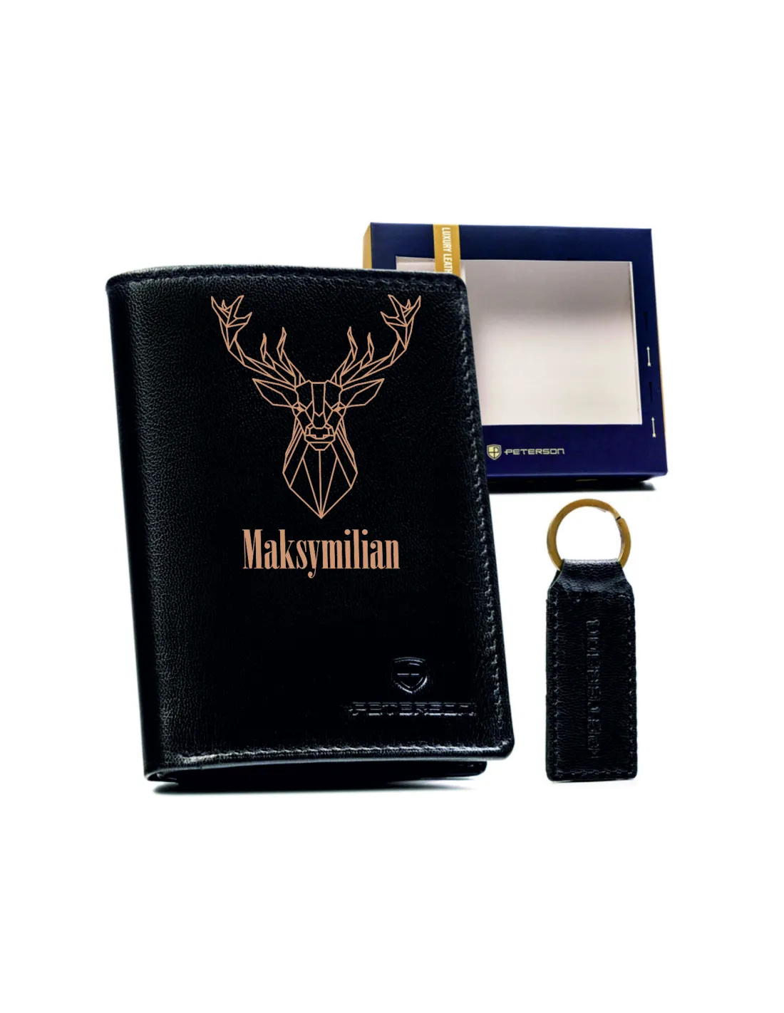 Elegancki skórzany portfel z indywidualnym grawerem marki PETERSON® + skórzany brelok