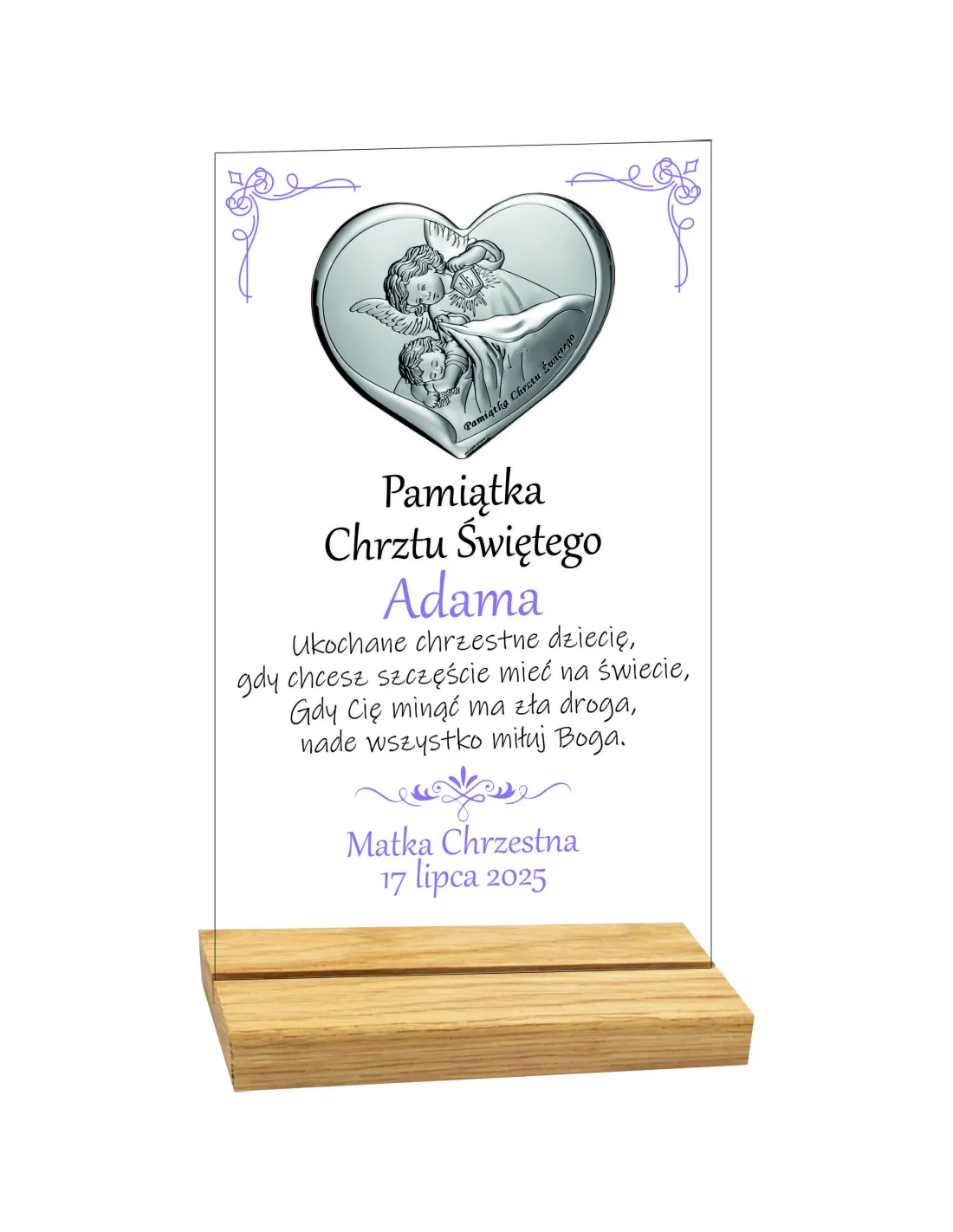PAMIĄTKA CHRZTU ŚWIĘTEGO STATUETKA z plexi srebrnym obrazkiem TWÓJ TEKST