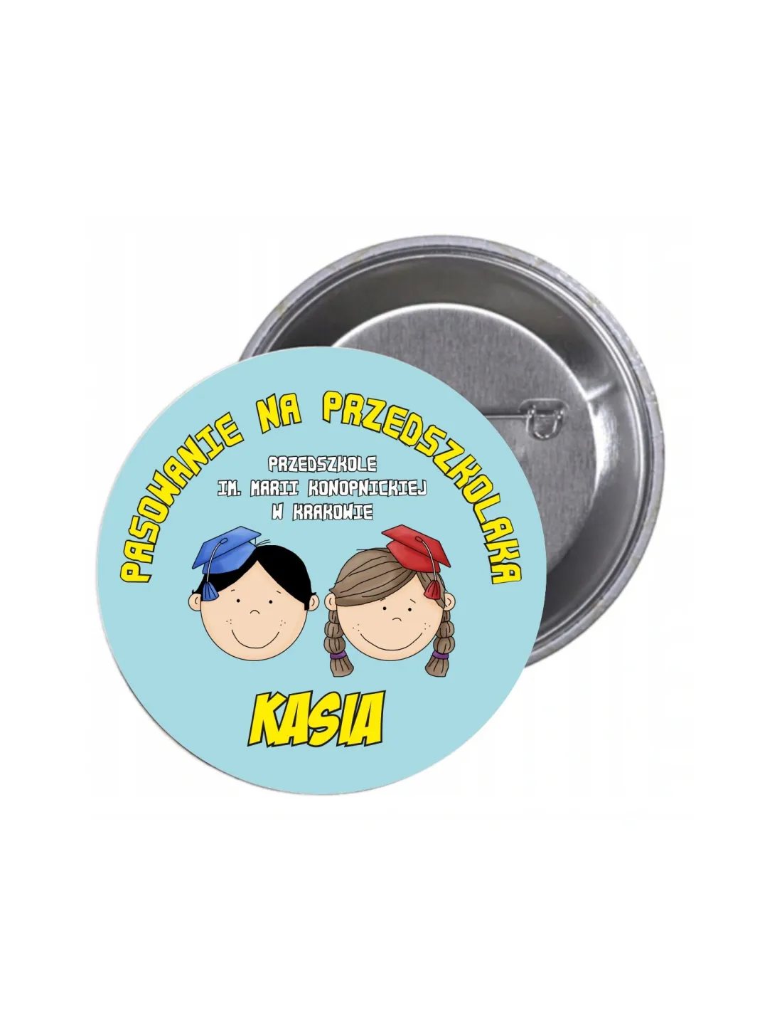 Przypinki Buttony Pasowanie na Przedszkolaka Szkoła Imię