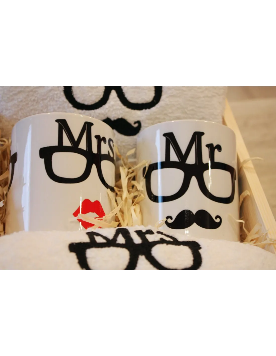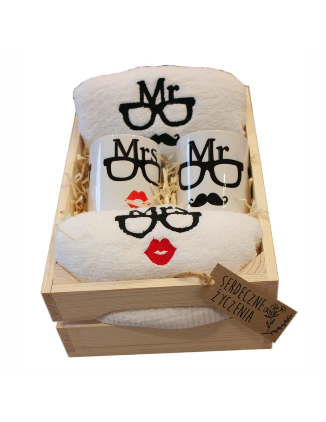 Zestaw prezentowy - 2 ręczniki z haftem w skrzynce ozdobnej + 2 kubki z nadrukiem