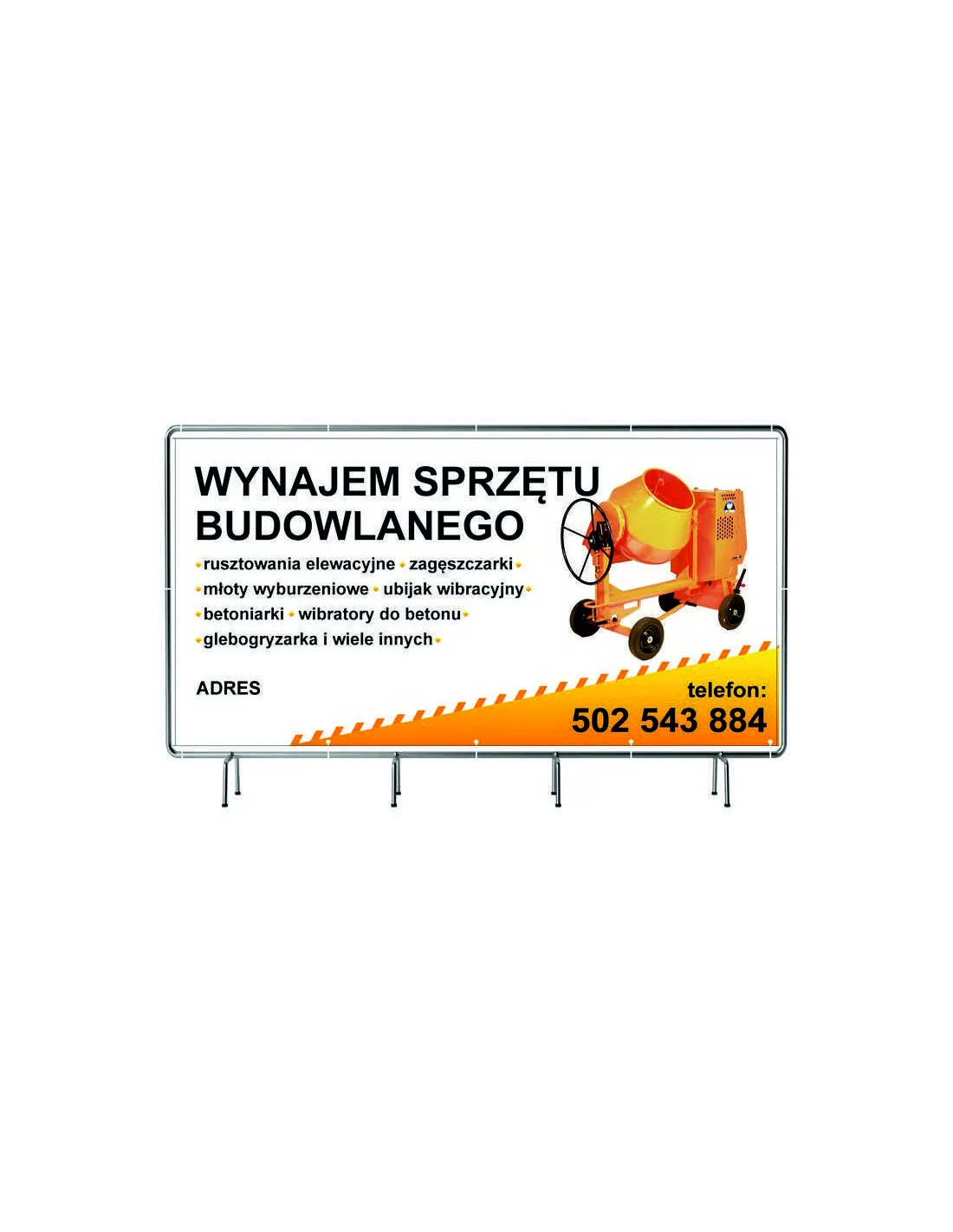 BANER REKLAMOWY 100x50cm projekt gratis plandeka WYNAJEM SPRZĘTU BUDOWLANEGO