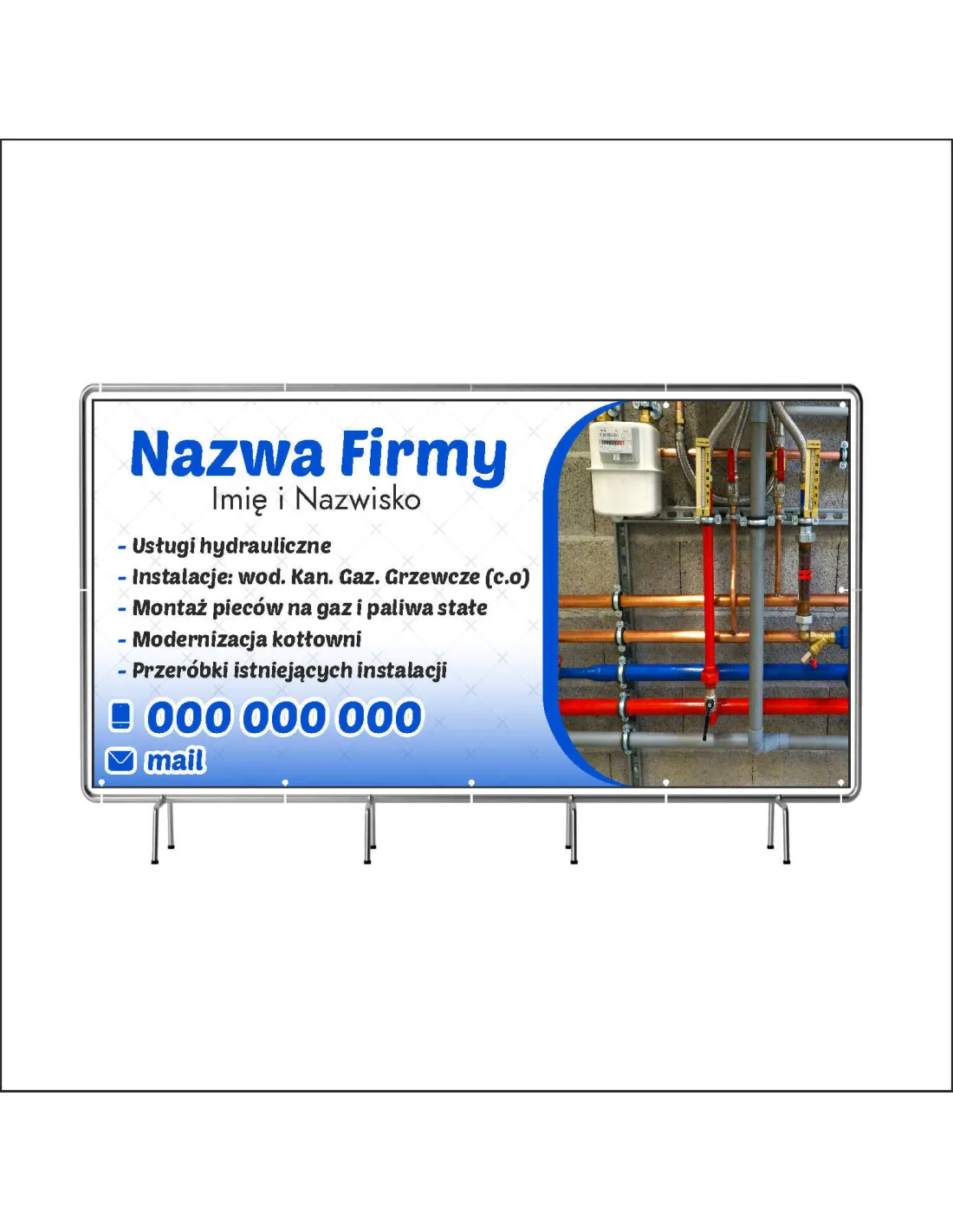 Reklamowy baner oczkowany 100x50 cm usługi hydrauliczne