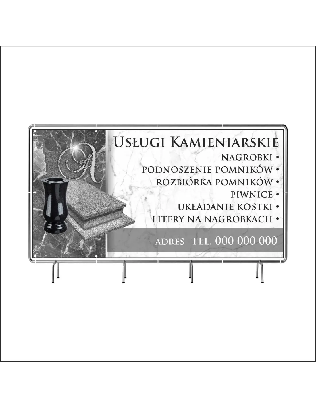 Reklamowy baner oczkowany 130x80 cm usługi kamieniarskie