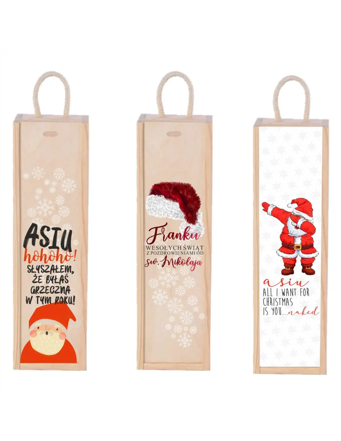 SKRZYNKA NA WINO prezent Mikołajki Święta nadruk