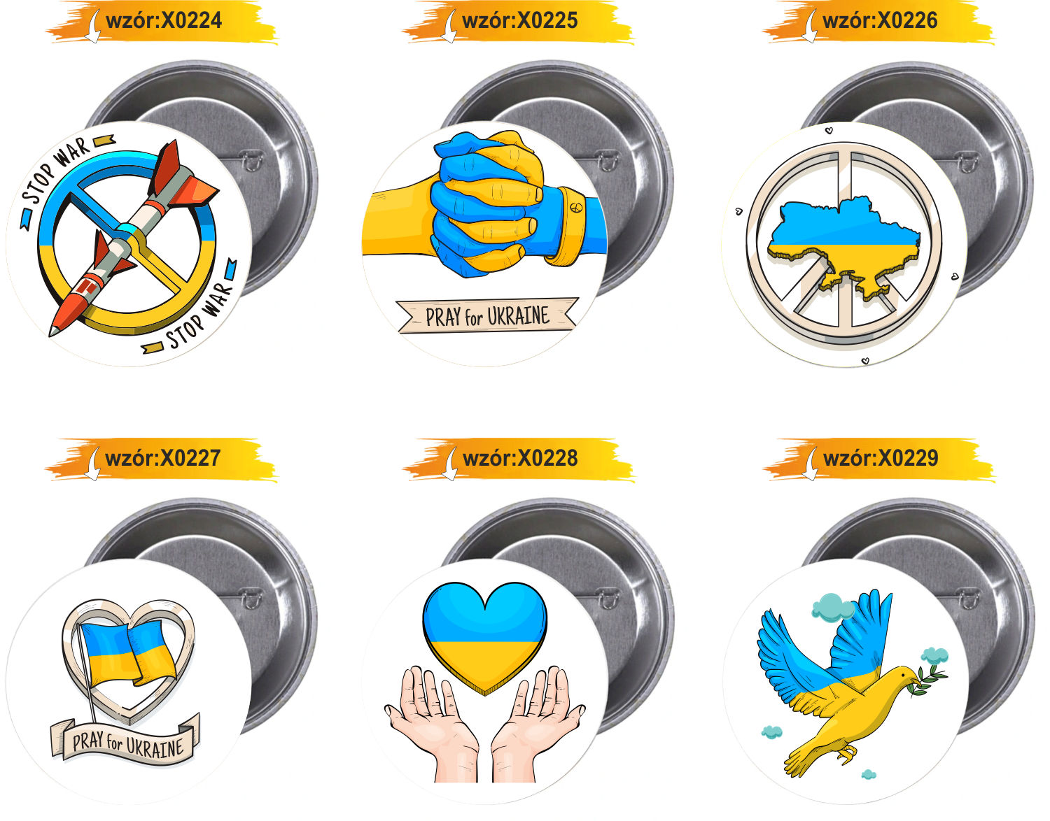 Przypinki buttony SOLIDARNOŚĆ Z UKRAINĄ - PRAY FOR UKRAINE znaczki badziki z grafiką
