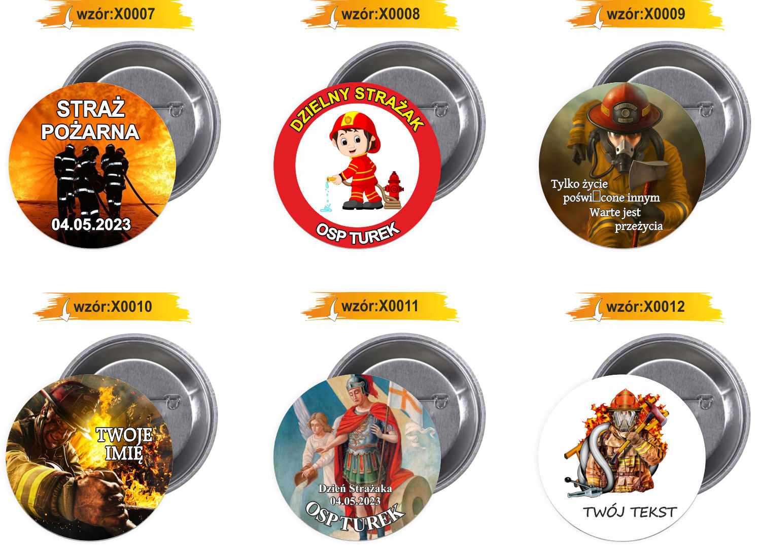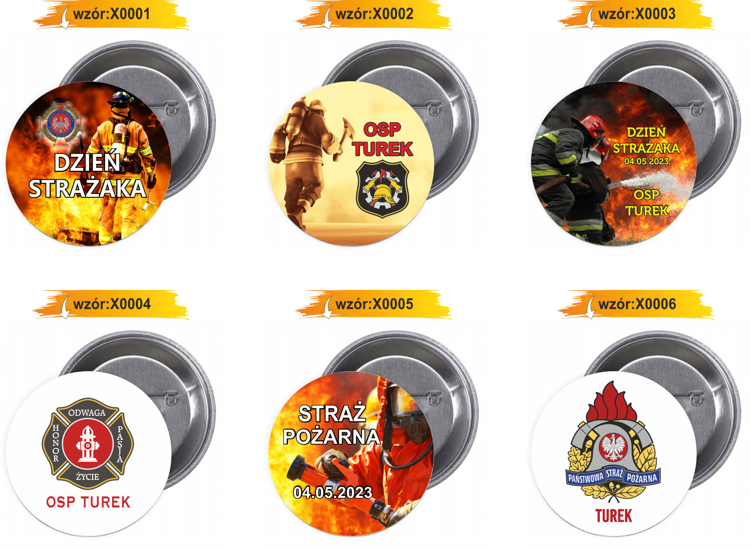 Przypinki Buttony Dzień Strażaka Znaczki Badziki z Grafiką