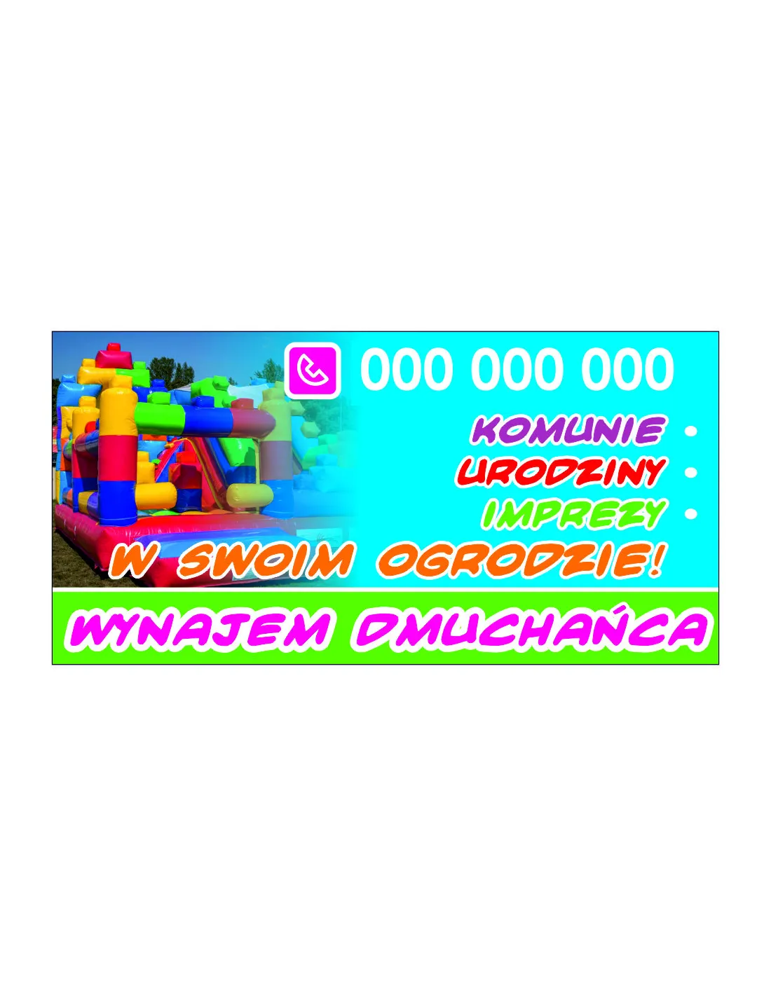 Szyld Reklamowy – Reklama 100x50 cm Wynajem Dmuchańca