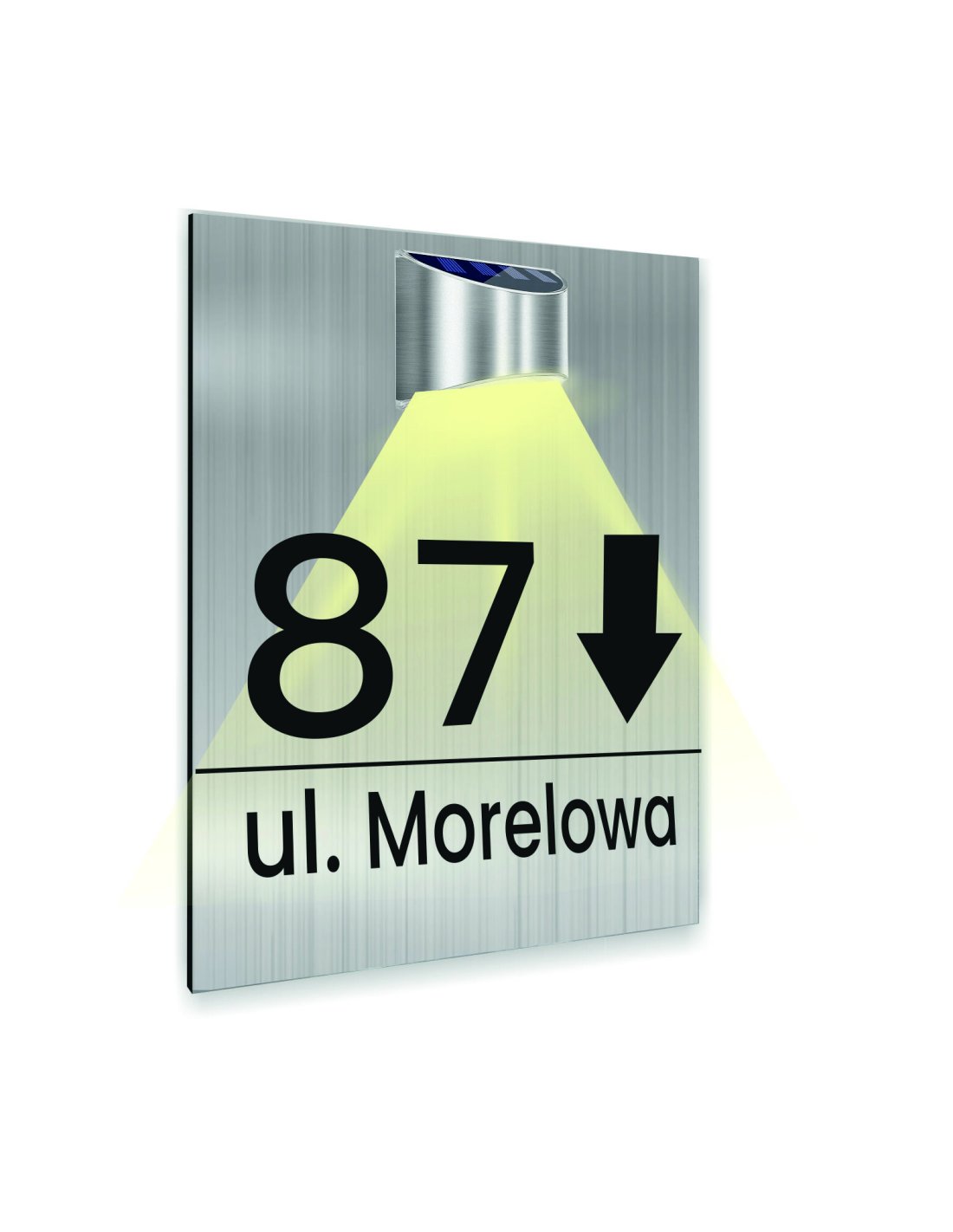 h1OŚWIETLANA TABLICZKA ADRESOWA Z WŁASNYMI DANYM WYKONANA Z PŁYTY DIBOND Z ELEGANCKIM I TRWAŁYM NADRUKIEM UV.