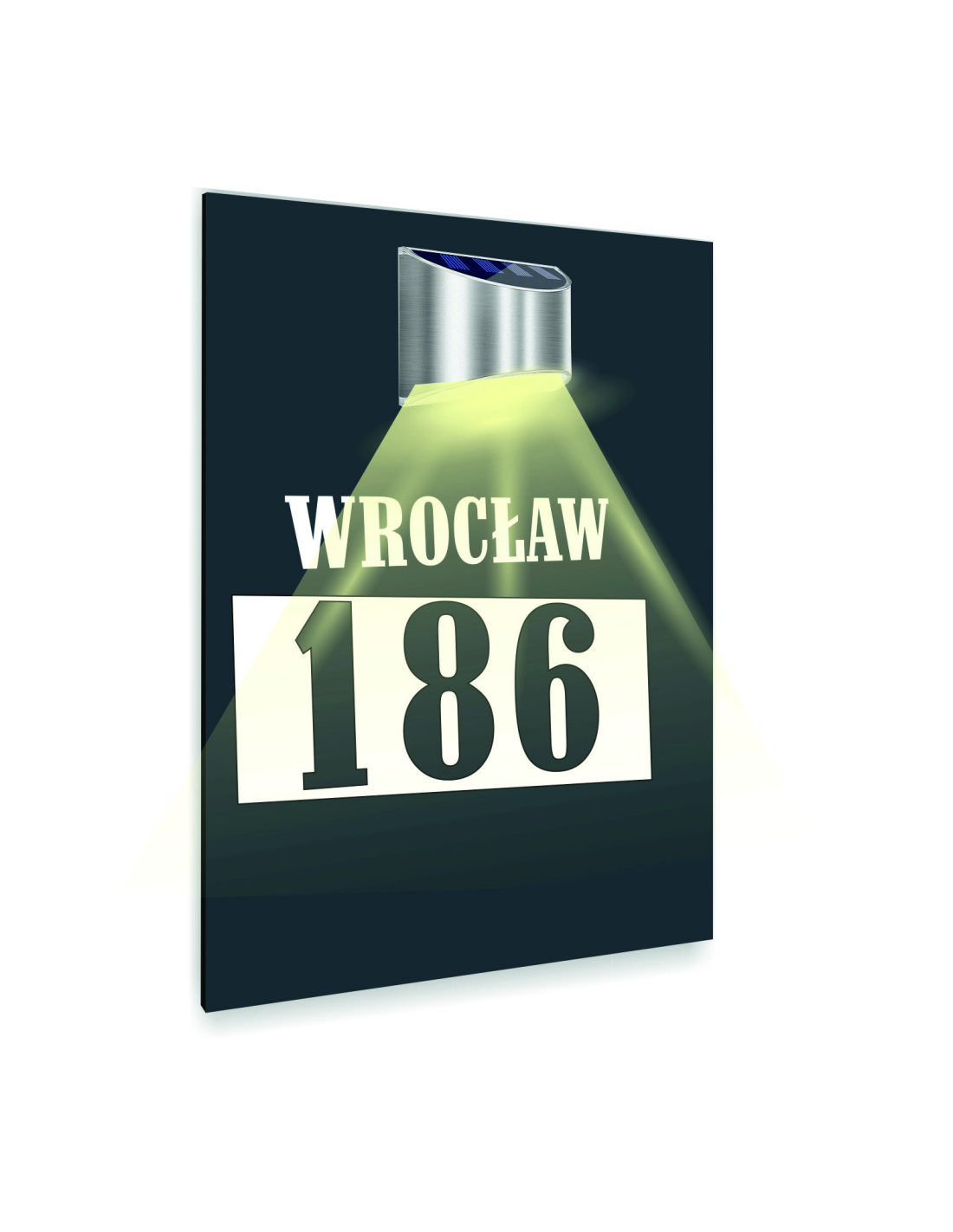 h1OŚWIETLANA TABLICZKA ADRESOWA Z WŁASNYMI DANYM WYKONANA Z PŁYTY DIBOND Z ELEGANCKIM I TRWAŁYM NADRUKIEM UV.