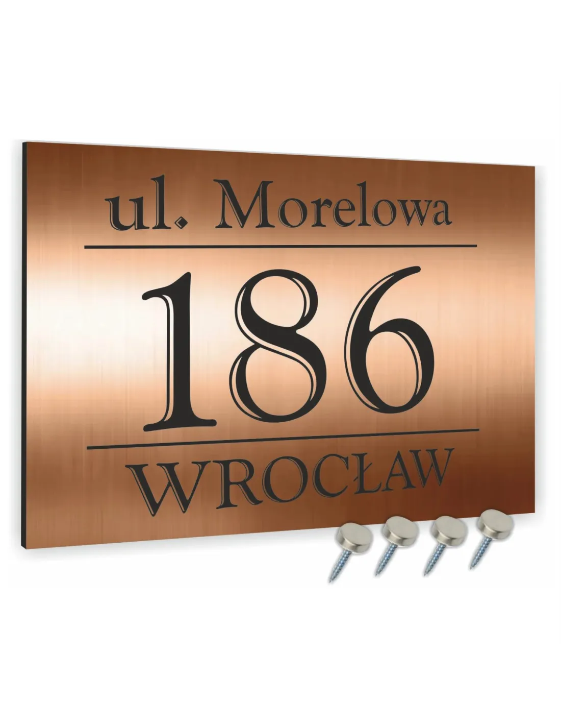 Tabliczka adresowa miedziana z numer domu NAZWA ULICY 30x40 dibond