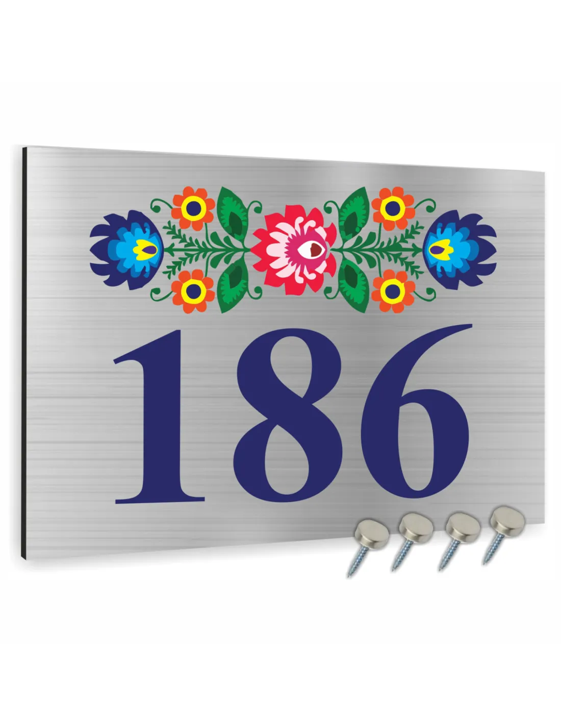 Numer na Budynek Dom Tabliczka Inox Motyw Ludowy Kwiaty