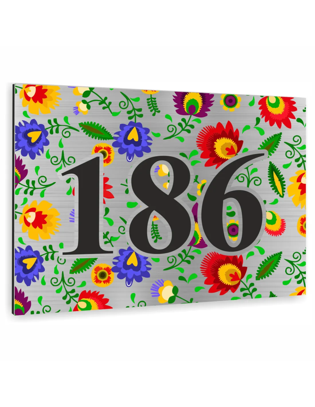 NUMER NA BUDYNEK dom Tabliczka ALUMINIUM element ludowy kwiaty 20x15cm dibond