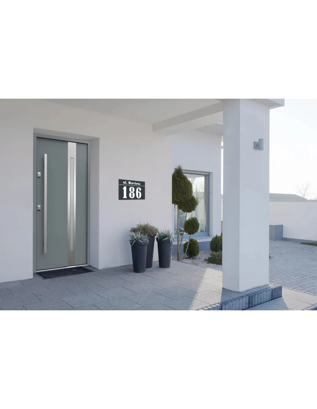 ELEGANCKA TABLICZKA ADRESOWA Z WŁASNYMI DANYMI WYKONANA Z PŁYTY DIBOND Z ELEGANCKIM I TRWAŁYM NADRUKIEM UV.