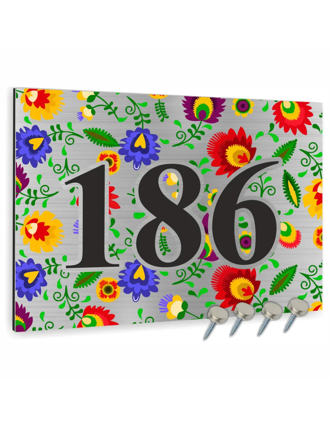NUMER NA BUDYNEK dom Tabliczka ALUMINIUM element ludowy kwiaty 30x20cm dibond