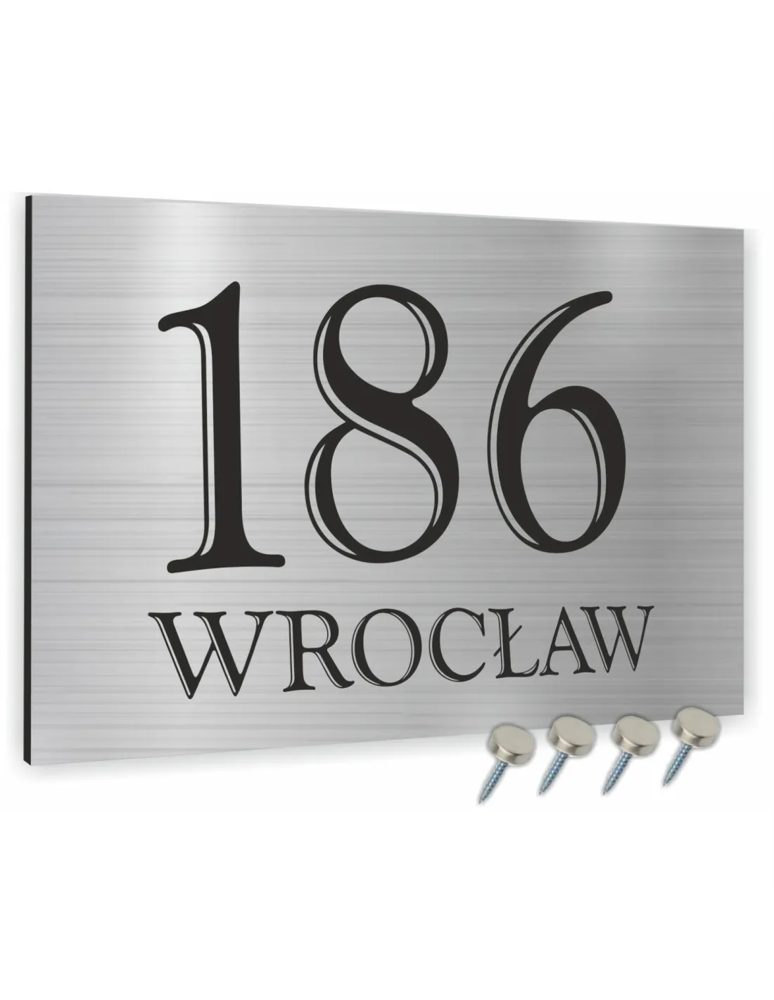 ELEGANCKA TABLICZKA ADRESOWA Z WŁASNYMI DANYMI WYKONANA Z PŁYTY DIBOND Z ELEGANCKIM I TRWAŁYM NADRUKIEM UV.